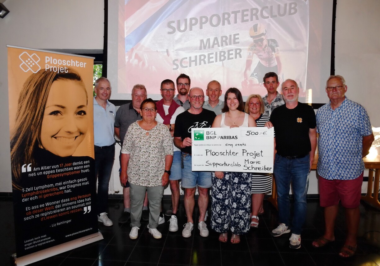 Préizerdaul: Ganz gut besicht war di éischt Joereshaaptversammlung vum „ Supporterclub Marie Schreiber“ mat sengen 230 Memberen viru kurzem am Festsall zu Platen. No der Begréissung huet de President Servais Antony di Super- Leeschtung vun der Préizerdauler Athletin Marie Schreiber besonnesch erviergestrach, dat bei der Welt-Meeschterschaft 2023 am Cyclo Cross an Holland eng 5. Plaatz konnt erausfueren. De President huet dem Marie Schreiber weiderhin vill Erfolleg an der Dammenequippe mam Team „Works“ gewënscht. Bei alle Stroossecoursen wou d’Marie Schreiber an Zukunft och sengt sportlicht Talent um Velo wëll beweisen, ass him fir di kommend Saison och Alles Guddes an dat och ouni Verletzung gewënscht gin. Nodeems dat di verschidde Berichter unanim vun der Versammlung gut geheescht gi sin, huet de Buergermeeschter Marc Gergen, d’Gléckwënsch vun der Gemeng Préizerdaul iwerbruecht an dem Marie Schreiber dat Allerbëscht a vill Gléck a sportlich Erfolleger fir Zukunft gewënscht. Zum Schluss vun der Versammlung konnt de Supporterclub zesummen mat senger Schwester Julie Schreiber, dem Jean- Paul Muller e Scheck vun 500 Euro iwerreechen, den dem „Plooschter Projet „ héi zu Lëtzebuerg zugut könnt. No sengen Wierder vu Merci fir dess Spend huet den Här Müller d’Aktivitéiten vum Projet och kuurz virgestallt. Duerno huet dess Versammlung a flotter Ambiance hiren würdigen Ofschloss fond. (CR )(Foto an Text: Charles Reiser)