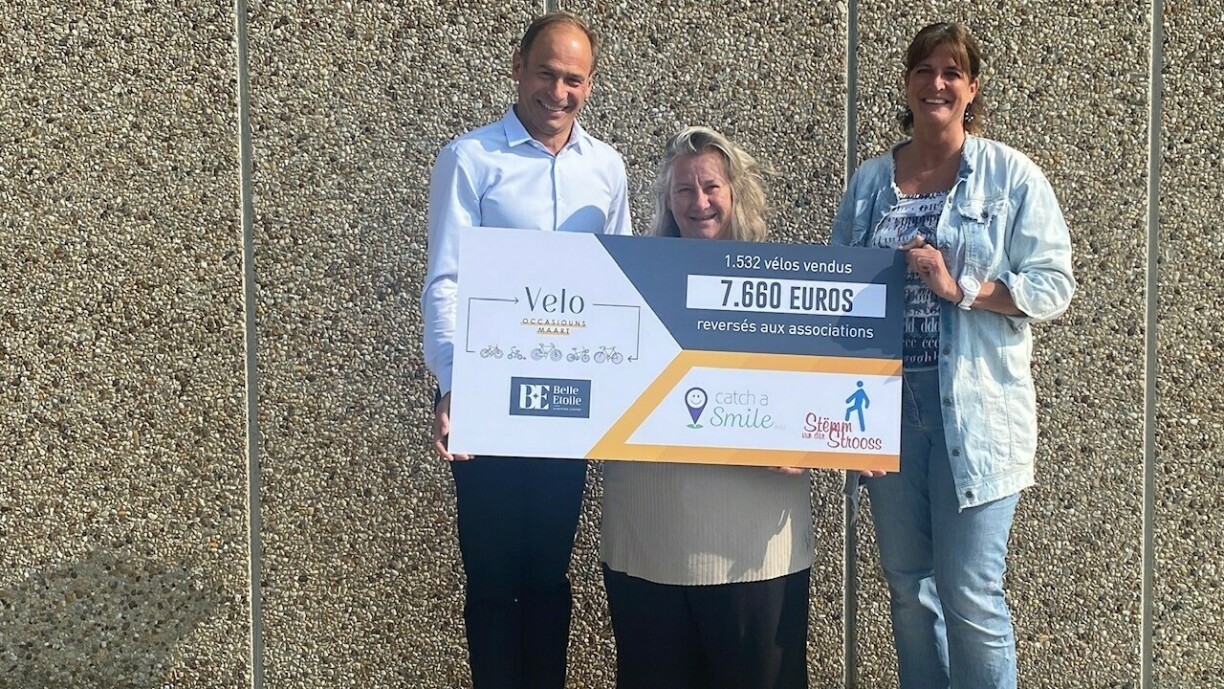 Wéi all Joer huet d’Belle Etoile en enorme Succès mat hirem “Velooccasiounsmaart” gehat. Iwwer 1.500 Secondhand-Vëloen hunn deemno de Besëtzer gewiesselt a bei all Vente goufe 5 Euro fir d’Organisatiounen “Catch a Smile” a “Stëmm vun der Strooss” zeréckbehalen. Um enn koum e Scheck vun 7.660 euro zesummen.