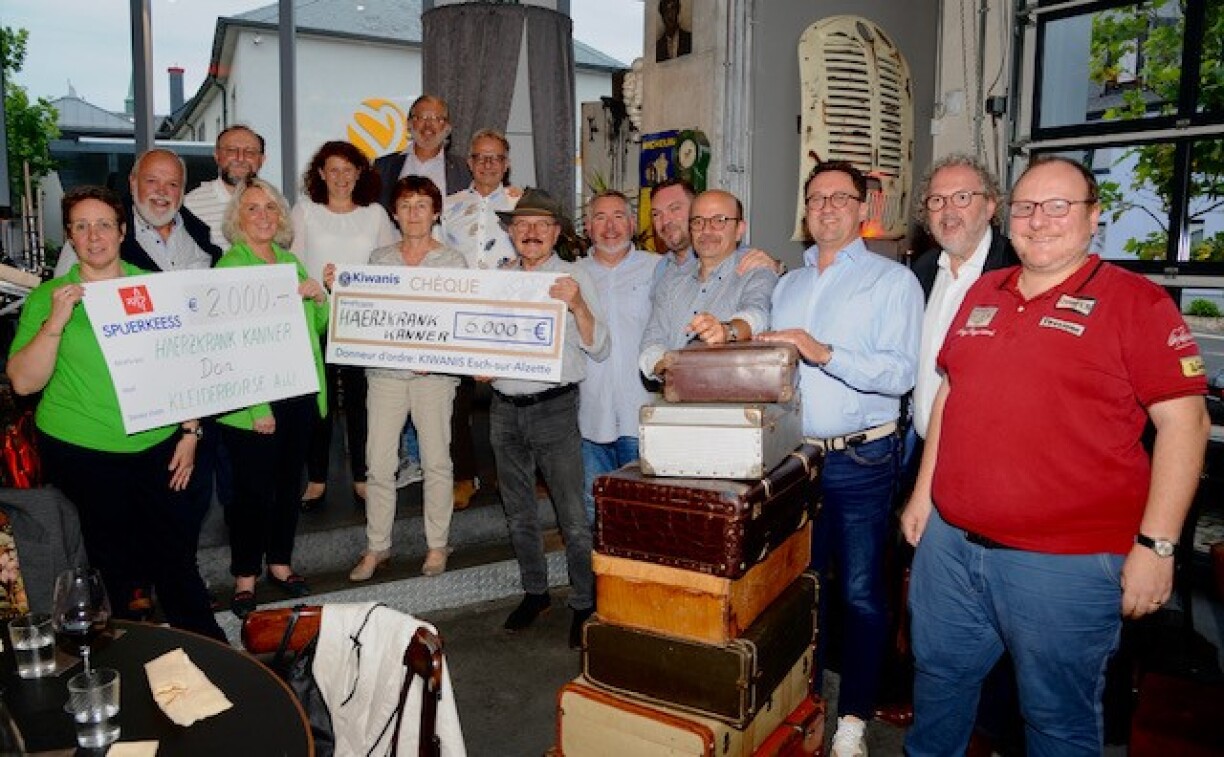 ... in Höhe von insgesamt 8.000.- Euro an die Vereinigung „Häerzkrank Kanner zu Lëtzebuerg“, vertreten durch Danièle Lentz-Polfer und Carole und Luc Rommes-Schuller. Dieser Betrag setzt sich aus dem während der Pandemie stattgefundenen Verkauf eines Siebdruckes und einer limitierten Auflage von Covid19-Masken des Künstlers Robert Brandy zusammen, dies in Höhe von 5.000.- € sowie einer privaten Spende von 1.000.- €.