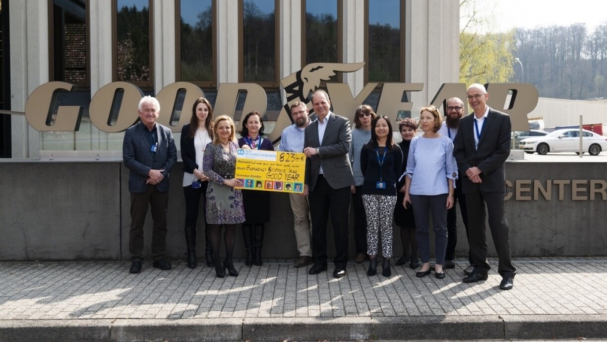 Carlos Cipollitti, Vice-President Product Development EMEA, Josy Blum, directeur de production de l’usine de pneus chez Goodyear Luxembourg et l’Associate Engagement Team viennent de remettre un chèque de 8.234€ à SOS Villages d’Enfants Monde. Cette somme est dédiée à l’important programme mis en place au nord de l’Irak pour accompagner dans le long et difficile processus de reconstruction quelque 1.400 jeunes dont beaucoup vivent encore dans des camps de déplacés. A la chaleureuse cérémonie étaient présentes trois représentantes de SOS Villages d’Enfants Monde : la directrice Sophie Glesener, la responsable des partenariats Anne Schweizer ainsi que la responsable des programmes Laurence Wangla récemment en mission en Irak. Occasion pour cette dernière de présenter les différents volets de ce programme axé sur la santé mentale, le soutien psychosocial et la résilience ainsi que sur les Teaching Recovery Techniques créées pour des jeunes ayant fait l’expérience traumatique de la guerre.