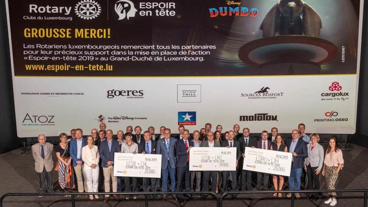 Pour la 7e année consécutive, l’action Espoir en tête, initiée par les Rotary Clubs luxembourgeois, a permis de récolter des dons en organisant des avant-premières ou projections d’exception dans les cinémas Utopolis/Kinepolis. 3 640 spectateurs étaient présents, ils ont ainsi à nouveau pu contribuer à la recherche sur le cerveau au Luxembourg.