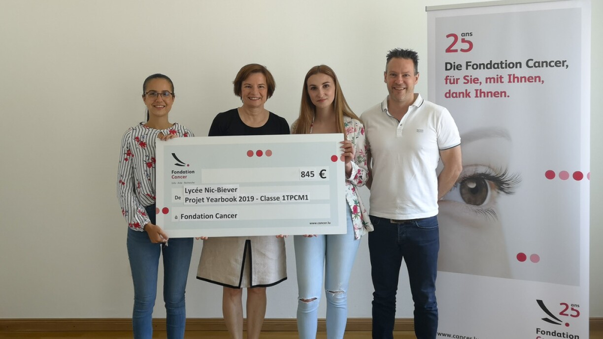 La Fondation Cancer remercie sincèrement les élèves, du projet yearbook 2019 de la classe 1TPCM1 du Lycée Nic-Biever, pour leur soutien et leur générosité.