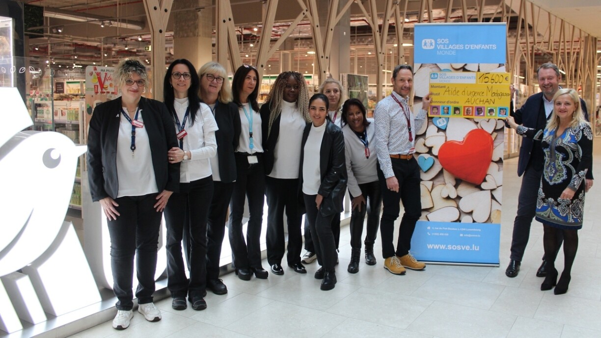 Après une 15e action solidaire organisée du 1er au 17 septembre dans les trois hypermarchés Auchan du Luxembourg et dans leurs centres commerciaux, les responsables d’Auchan Retail Luxembourg viennent de convier les représentantes de SOS Villages d’Enfants Monde pour une symbolique remise de chèque. Alors que 2022 est marquée par la guerre en Ukraine et les crises mondiales qu’elle a engendrées, la solidarité a quand même été au rendez-vous même si les difficultés liées au contexte actuel se font sentir. Au final, ce sont 15.600€ qui ont été collectés sur les trois sites Auchan (Kirchberg, Differdange et Cloche d’Or) pour les enfants de Madagascar.