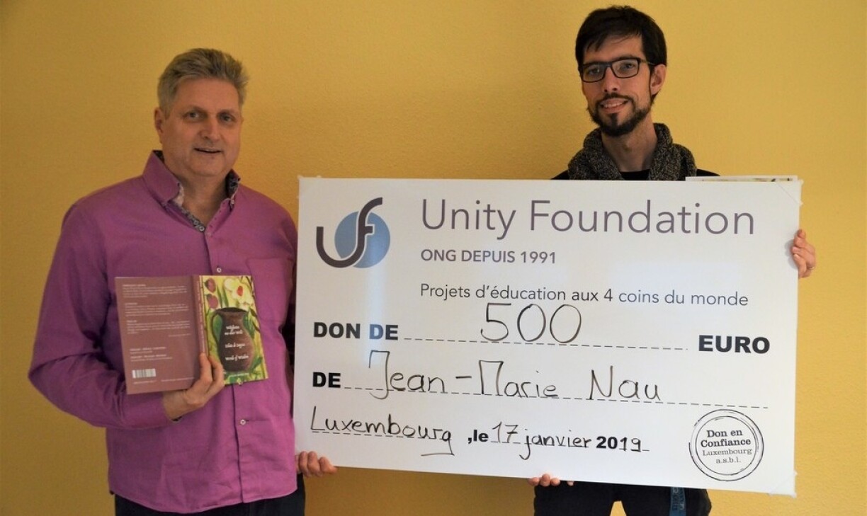 ... und beschloss, pro verkauftem Buch eine Spende von 2 € an Unity Foundation zu machen. Bis dato hat er 250 Bücher verkauft und so bereits 500€ für Unity Foundation gesammelt! Das Buch ist für 12€ im Handel erhältlich und kann bei Unity Foundation oder direkt bei Herrn Nau per E-Mail (jeanmarienau@gmail.com) bestellt werden.