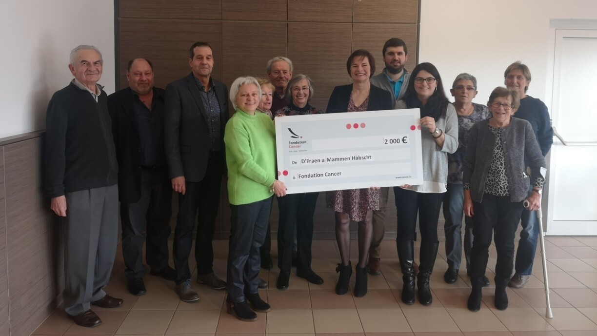 D’Check-Iwwerreechung huet den 19. Januar an den Raimlechkeete vun der Associatioun stattfonnt. D‘Lucienne Thommes, Direktesch vun der Fondation Cancer huet all den Persounen wou present waren häerzlech Merci gesot fir hiren Engagement fir Kriibspatienten.