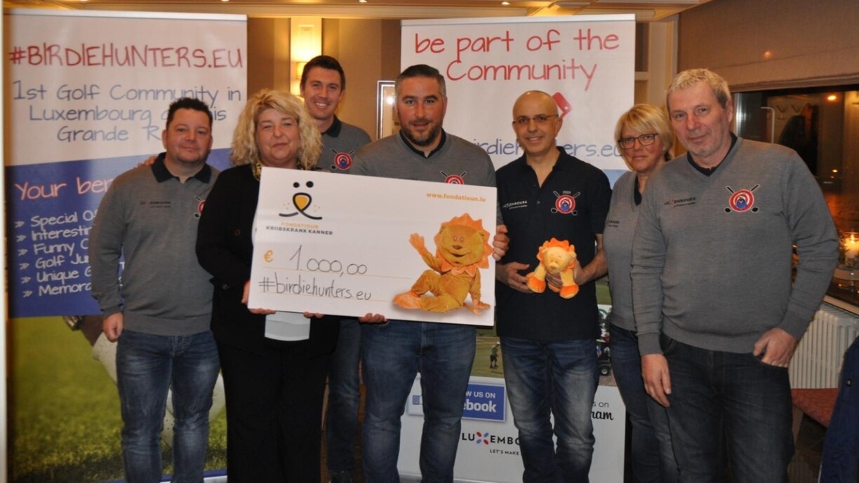 Anlässlich der Generalversammlung am vergangenen Freitag fand die Schecküberreichung in Höhe von 1000,00 € an die „Fondation Kriibskrank Kanner“ statt. Die Birdiehunters bedanken sich bei allen Teilnehmern und Gönnern und sie freuen sich schon auf ein Wiedersehen bei der 4. Auflage des Birdiehunters Charity Cups am 15.08.2020 im Golf-Resort Bitburger Land. Weitere Infos zur Golf Community, der ersten in Luxemburg und der Großregion, und zu ihren Aktivitäten finden Sie unter www.birdiehunters.eu. www.fondatioun.lu“