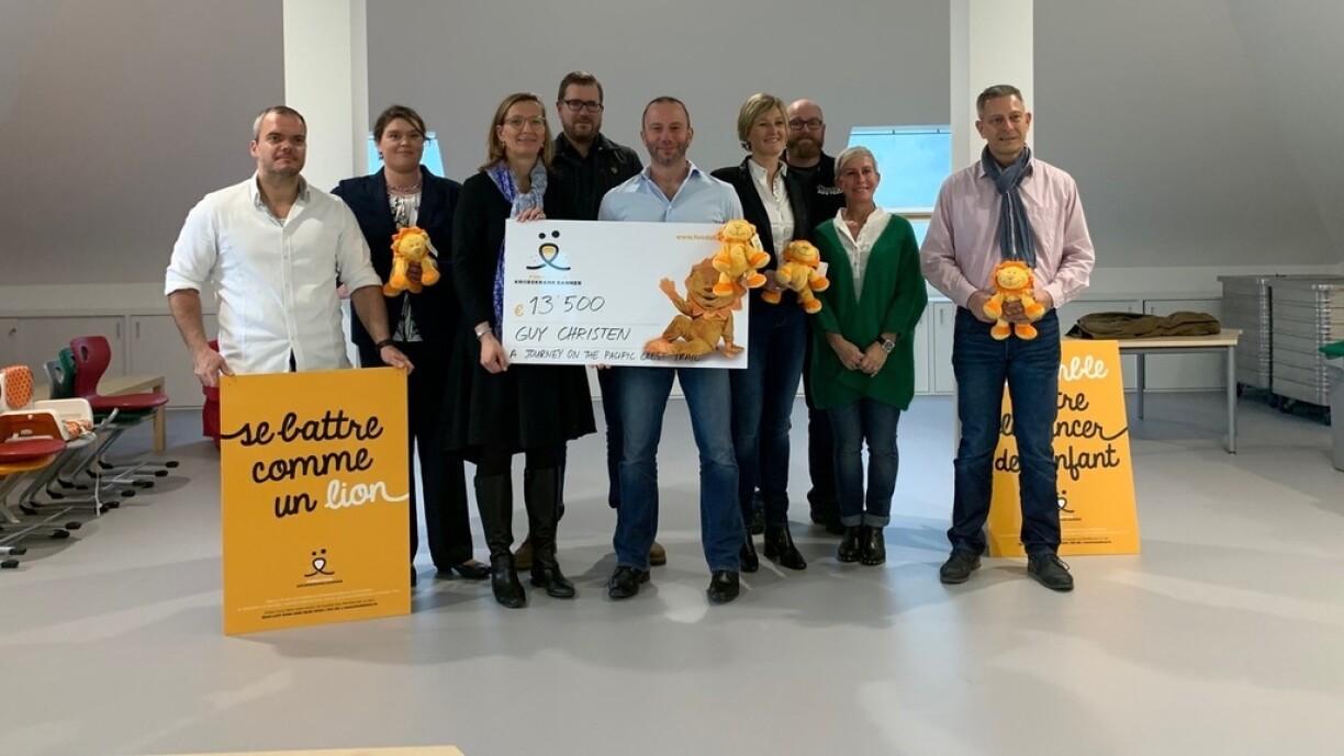 Duerch säi Projet “A Jouney on the Pacific Crest Trail”, konnt hie Spenden an Héicht vun 13.500.-€ sammelen, déi hie voller Freed bei enger Scheckiwwerreechung un d’Fondatioun Kriibskrank Kanner iwwerreecht huet. Déi integral Zomm däerf agesat gi fir therapeutesch Projete mat de Kanner a geet virun allem un déi zwou geplangte Reesen a Finnland, wou d’Kanner mat Hëllef vu Schlittenhënn u sech selwer schaffe kënnen – e grousse Projet, deem dem Guy nosteet. Des kleng Feier war a Presenz vun all senge Sponsoren a Partner.