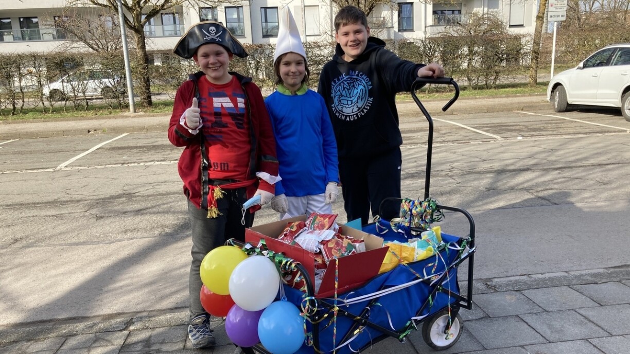 Esou hunn déi dräi Jonge sech mol an hiren flottste Fueskostüm geheit a sinn zu Esch duerch Stroosse gaangen, fir de Leit awer e puer Séissegkeeten ze verdeelen an hinnen esou ee flotte Moment ze erméiglechen. Hire Public war esou begeeschtert, dass eis dräi Jonge mat klengen Donatioune belount ginn sinn. De Matteo, de Yann an de Max wollten hiren Erléis awer fir ee gudden Zweck spenden. Si hunn der Fondatioun Kriibskrank Kanner een Don vun 350 € iwwerreecht.