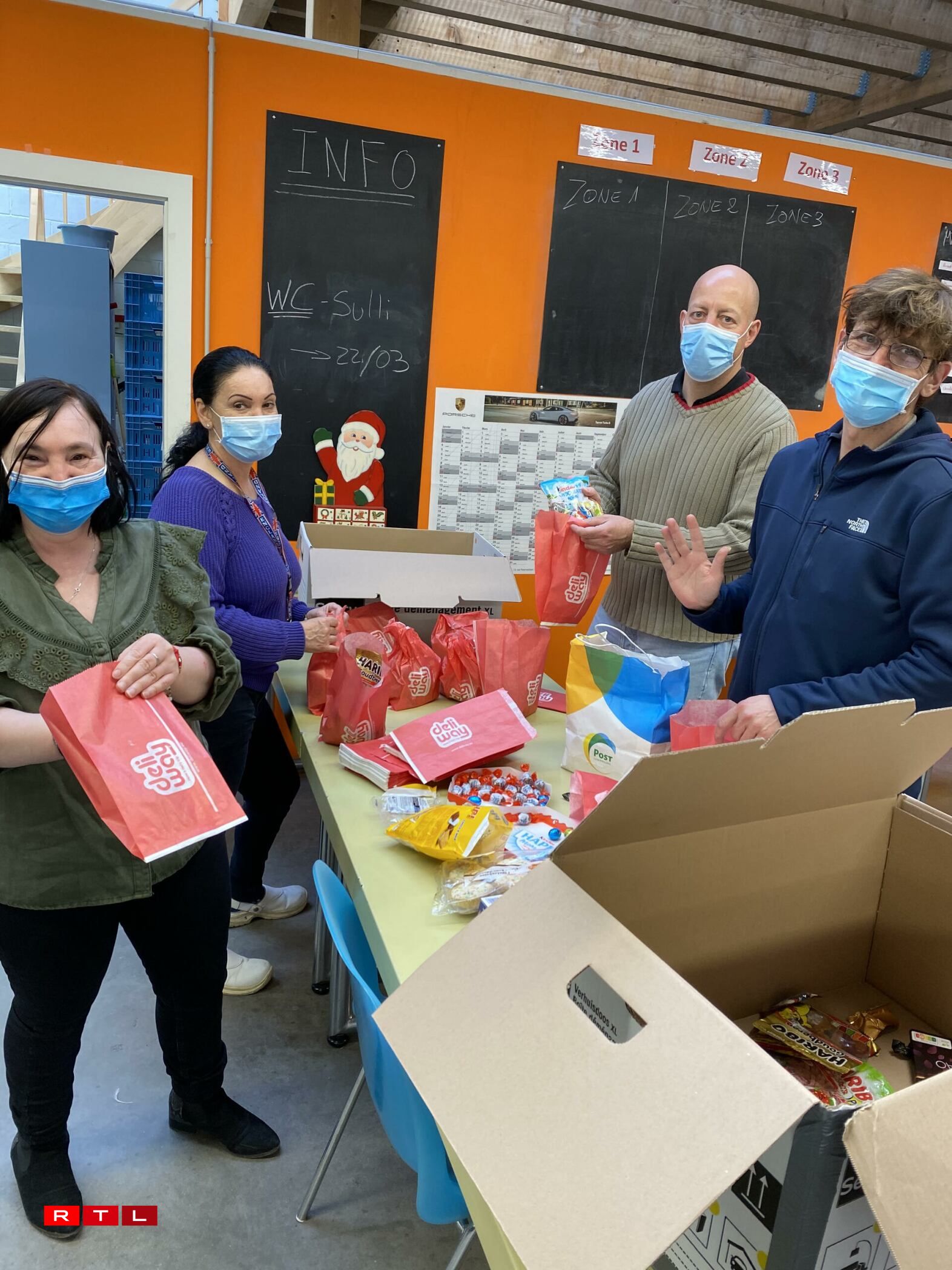 L’équipe de la Schweesdrëps a fait honneur à son nom et a emballé les six cartons de friandises dans des petits sachets, puis les a livrés aux restaurants sociaux de la Stëmm vun der Strooss d’Esch-sur-Alzette et de Hollerich. Juste à temps pour Pâques, les bonbons, chocolats, et biscuits ont été distribués aux clients de l’association qui vient en aide aux personnes défavorisées. Grâce au don des enfants et des parents de la commune Helperknapp, le lapin de Pâques est aussi passé à la Stëmm vun der Strooss cette année, faisant ainsi de nombreux heureux.