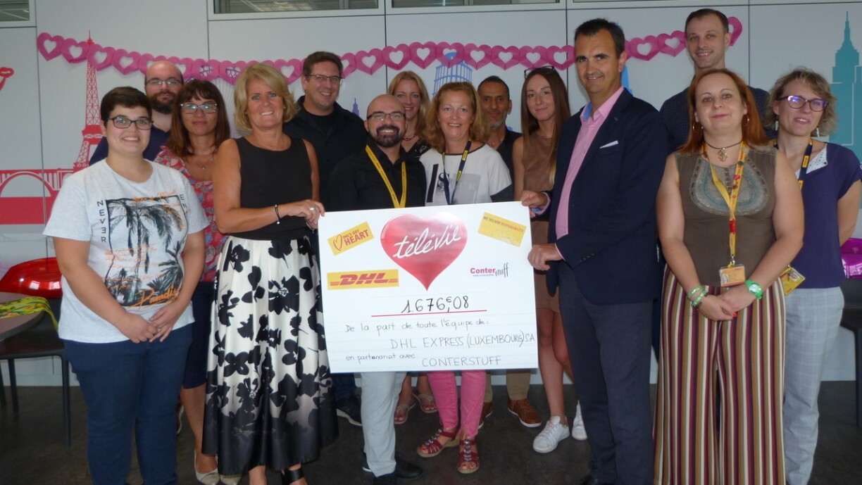 « Dans le cadre des programmes « Living Responsibility » et « DHL’s Got Heart » du groupe DP DHL, parallèlement au sponsoring du DHL TELEVIE Tour, les Collaborateurs de DHL EXPRESS Luxembourg se sont mobilisés en avril 2019 afin de collecter de l’argent au profit du TELEVIE 2019.