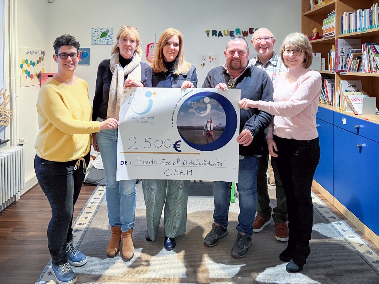 Dës Kéier gouf d’Trauerwee asbl ausgewielt, déi trauerend Kanner a Jugendlecher ënnerstëtzt, déi schonn a jonke Jore Leit an hirem Liewe verluer hunn. De Scheck gouf iwwergi vum President vum FSSC Roger Zwally, vun der Vizepresidentin vum FSSC Patrizia Ascani, a vun der Sekretärin vum FSSC Silvana Antunes.