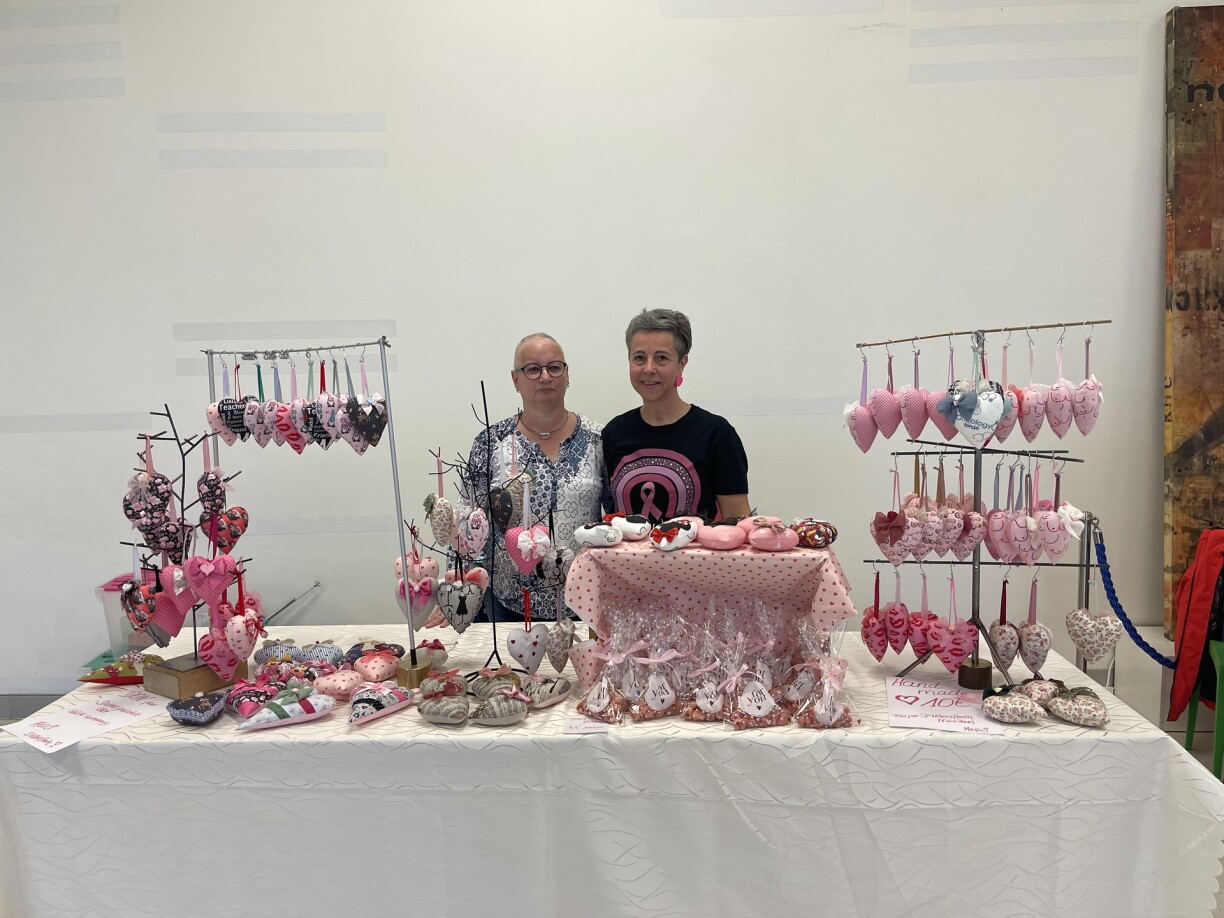 Dëse koum zesummen aus dem Benefice, dee si mat hirem Stand am Kader vum Octobre rose am CHEM gemaach hunn. Vill vun de rosa Häerzer, déi d’Häerzfeeën op der Hand bitzen an déi d’Hoffnung am Kampf géint de Broschtkriibs symboliséieren, hunn do en neit Doheem fonnt.