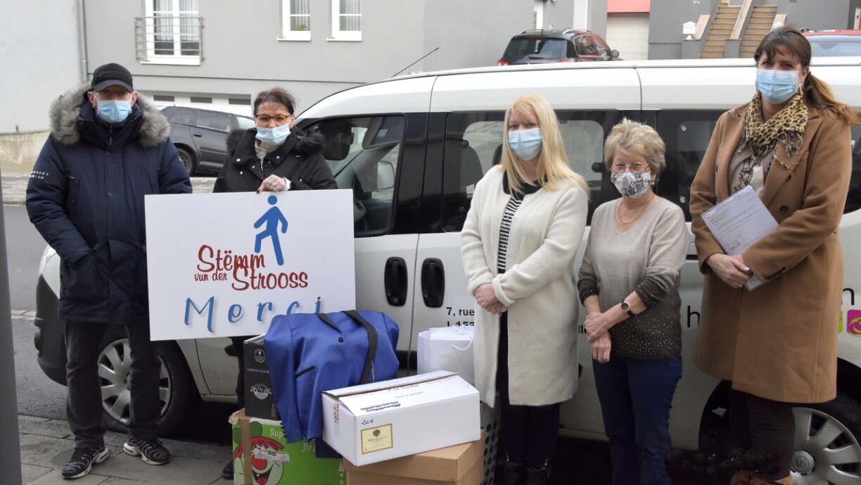 Am Freitag, den 8. Januar, traf das Team der Stëmm vun der Strooss, vertreten durch Christiane Weber, Michel Conrardy und die Direktorin, Alexandra Oxacelay, die Verantwortliche von Hëllefen mat Herz in ihrem Haus in Sanem. Die sorgfältig gepackten Kisten füllten einen ganzen Lieferwagen.