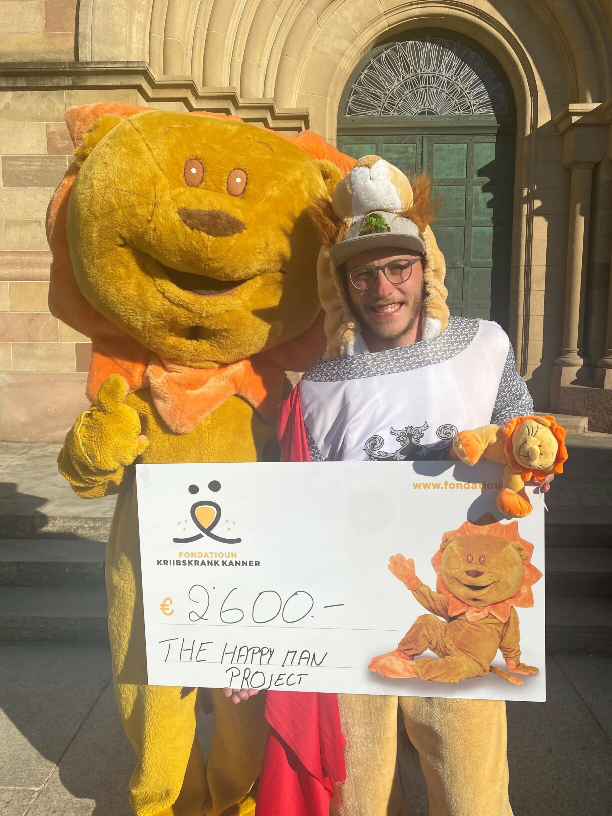 „The Happy Man Project trëppelt an witzege Kostümer vill Kilometeren fir de gudden Zweck. Den Här Picard ass super motivéiert an hellt och all Bloder an kaf, well hien seng Missiounen mat vill Freed an mam Häerz um richteg Fleck bewältegt. Den Här Picard konnt virun der Basilika zu Iechternach dem Poldi ee Scheck vun 2.600.-€ iwwerreechen fir d’Fondatioun Kriibskrank Kanner.