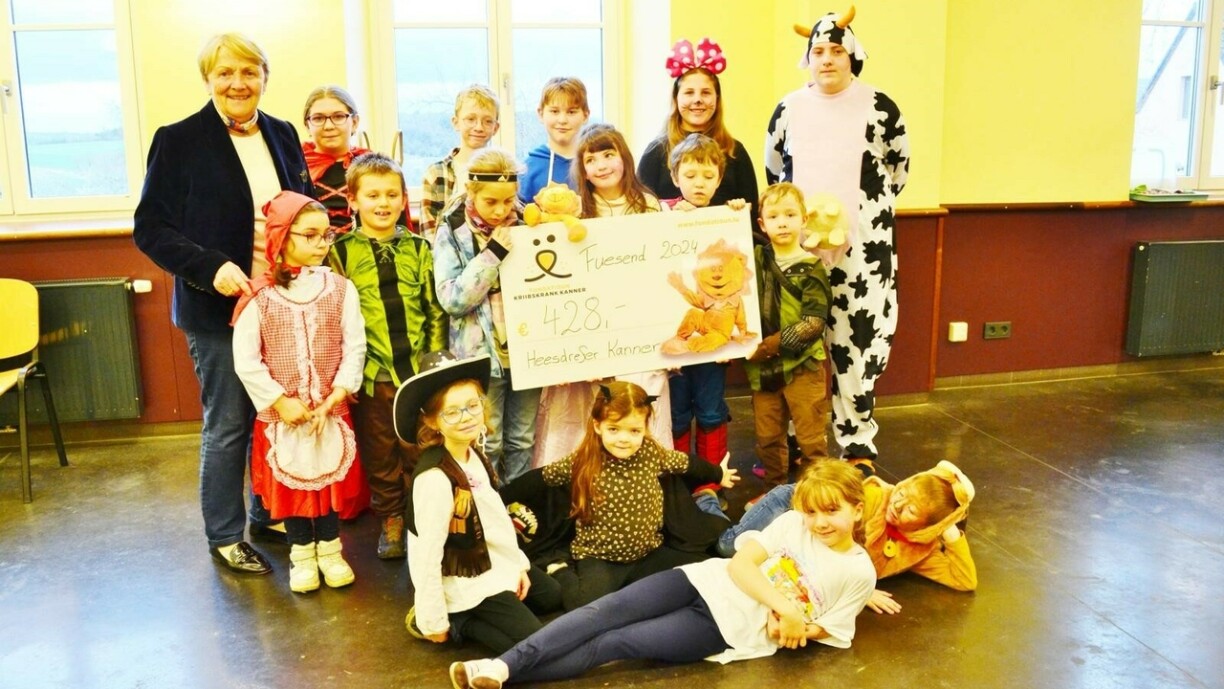 D’Zäit vun der Fuesent ass eng geckeg a lëschteg Zäit. D’Kanner vun Heesdref hunn also hire flotten Fuesostüm aus dem Schaaf geholl, a sinn am Duerf ophiewe gaangen. Si hunn hir Kollekt awer net fir sech gehalen, mee si hunn un d’Kanner geduergt deenen et de Moment net esou gutt am Liewe geet. D’Fondatioun Kriibskrank Kanner huet ee Scheck mat där formidabeler Zomme vu 428€ vun deene klenge Fuesboken iwwerreecht kritt. www.fondatioun.lu