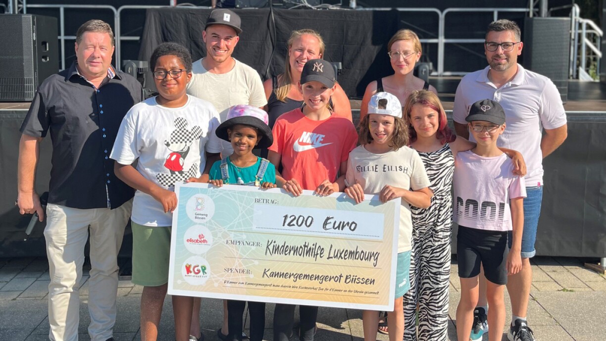 Kannergemengerot Bissen organisiert Spendenaktion für ukrainische Flüchtlinge(Luxemburg, 18.08.2022) 1200 Euro sind bei einer Spendenaktion für Ukraine-Flüchtlinge in der Gemeinde Bissen zusammengekommen. Initiiert hatte den Kuchenverkauf der Kannergemengerot Bissen. Das Schicksal der Bevölkerung in der Ukraine bewegte die Schüler und so entschlossen sie sich tätig zu werden und durch den Verkauf selbst gebackener Kuchen Spenden für geflüchtete Kinder und deren Familien zu sammeln. Der Betrag kommt der Soforthilfe der ONG Kindernothilfe Luxembourg in der Republik Moldau und in Rumänien zugute.