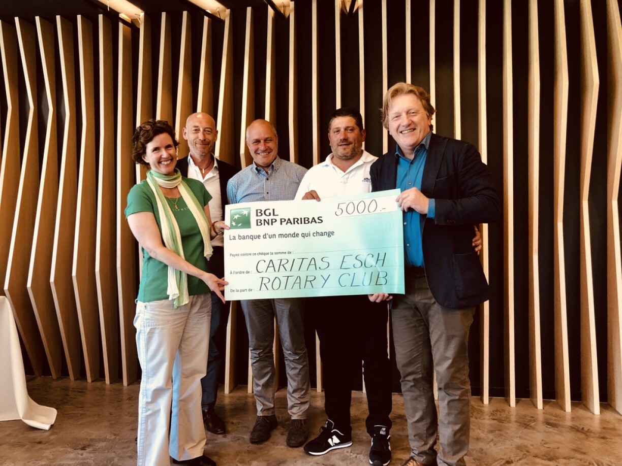 Madame Theves a vivement remercié tous les membres du « Rotary Club Esch-sur-Alzette » pour leur geste généreux et leur soutien régulier en faveur des initiatives de Caritas Luxembourg. Ce chèque d’un montant de 5.000 € servira à financer l’achat de fruits et de légumes au « Caritas Buttek » d’Esch-sur-Alzette.