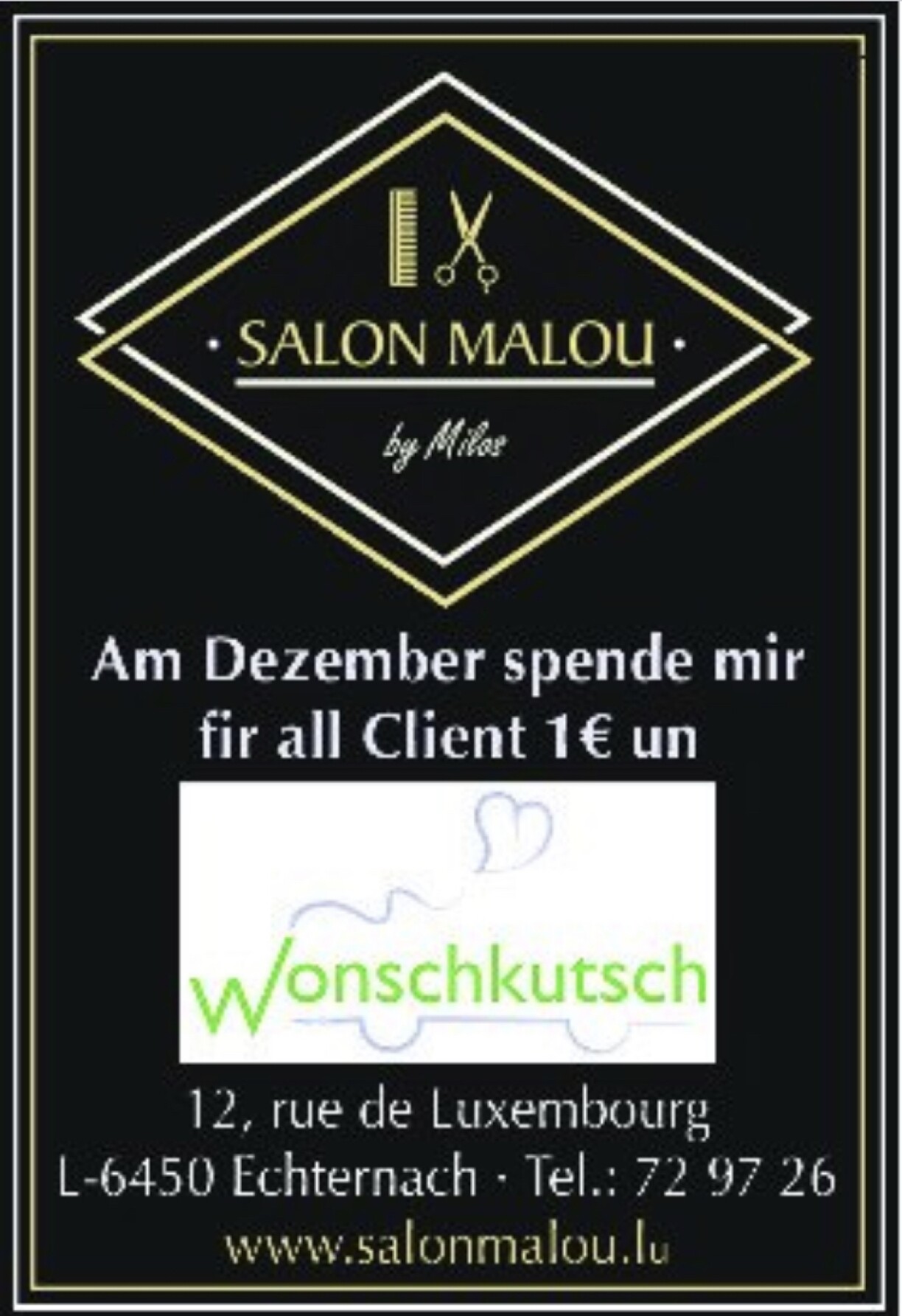 Mir soen dem Salon Malou villmools Merci dass si des Kéier un eis geduecht hunn. (Wonschkutsch asbl)