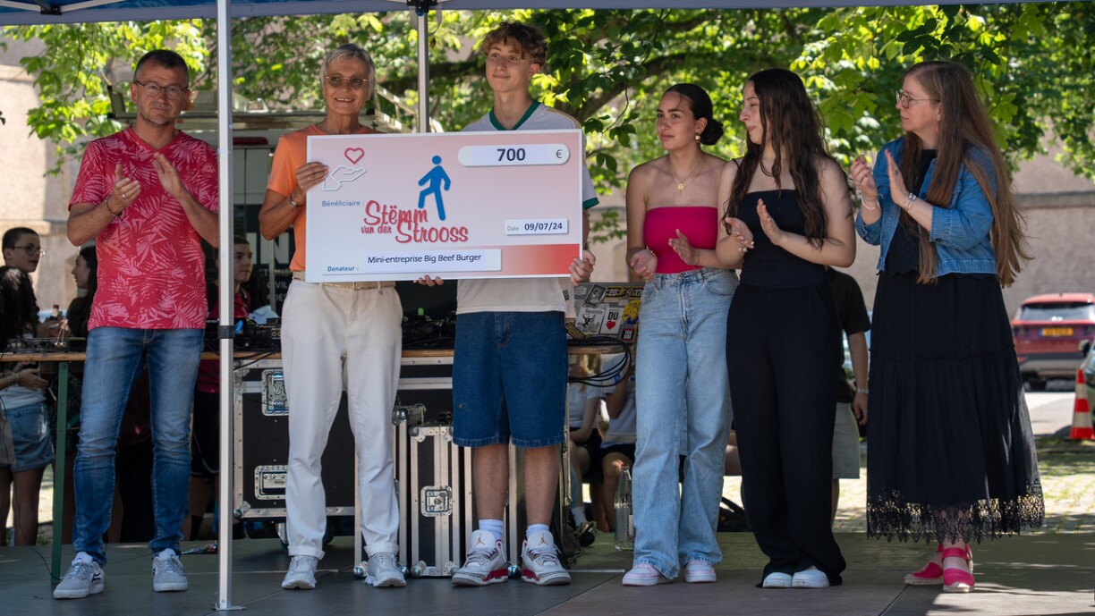 Im Rahmen ihres Miniunternehmens BIG BEEF BURGER ist es einer Gruppe von acht Schülern des Lycée Classique in Echternach gelungen, 700 € für die Stëmm vun der Strooss zu sammeln.