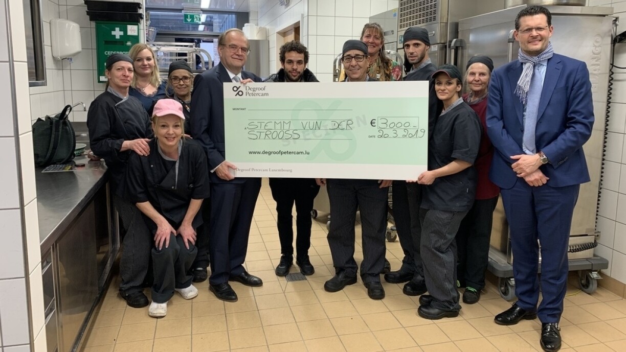 Die Bank Degroof Petercam Luxemburg unterstützte die Vereinigung Stëmm vun der Strooss im Rahmen ihrer im Januar 2019 eingeleiteten Spendenaktion gegen Lebensmittelverschwendung auf direktem Weg. Diese Unterstützung folgt der ersten Kampagne der Stëmm im Jahr 2018 über die Crowdgiving-Plattform Gingo Community, die 2015 von Degroof Petercam ins Leben gerufen wurde und seit 2018 in Luxemburg aktiv ist.