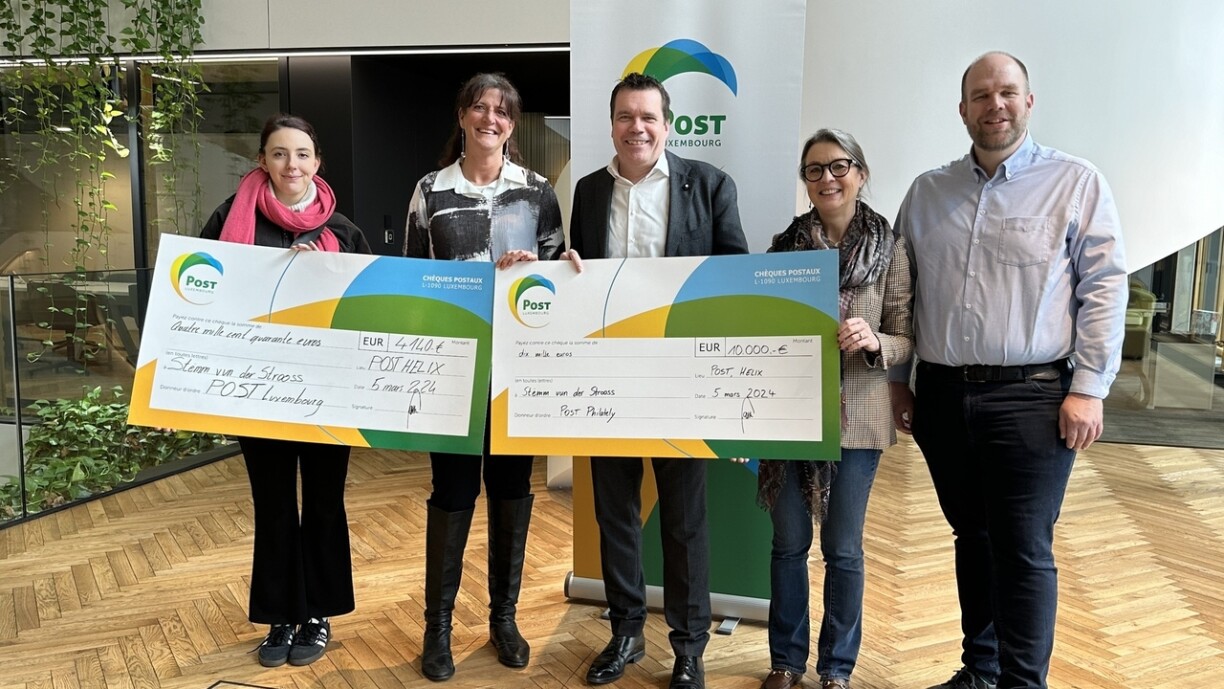 Weider 10.000 Euro huet POST Philately gespent, déi de Krypto-Timber “Gold Edition” fir de gudden Zweck verkaf haten. Dëse Scheck soll genotzt ginn, fir d’Paie vun 12 Persounen ze bezuelen, déi bei der Stëmm vun der Strooss schaffen.