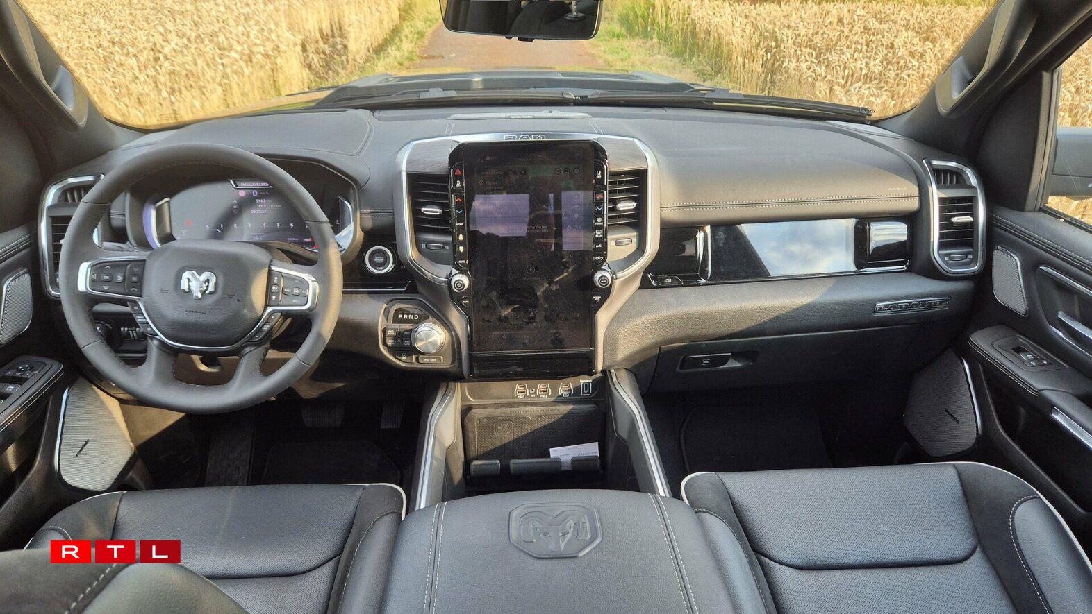 Am Banneraum muss ech soen, fënnt een och wierklech alles wat ee brauch. Plazen, fir eppes néierzeleeën, fënnt een der méi wéi ee brauch, an do deels och wierklech grouss Gefaacher, wou een och grouss Waasserfläsche kann dra verschwanne loossen. E grousse 14,4 Zoll Display fir den Navi, Panoramadaach mat Schiebedaach-Funktioun, Wireless-Charger, gutt Soundanlag mat 19 Lautsprecher vun Harman Kardon, bequeem Sëtzer asw. hate mer zum Beispill an eisem Testmodell, deen an d’Ausstattungsgamm “Laramie” hat.