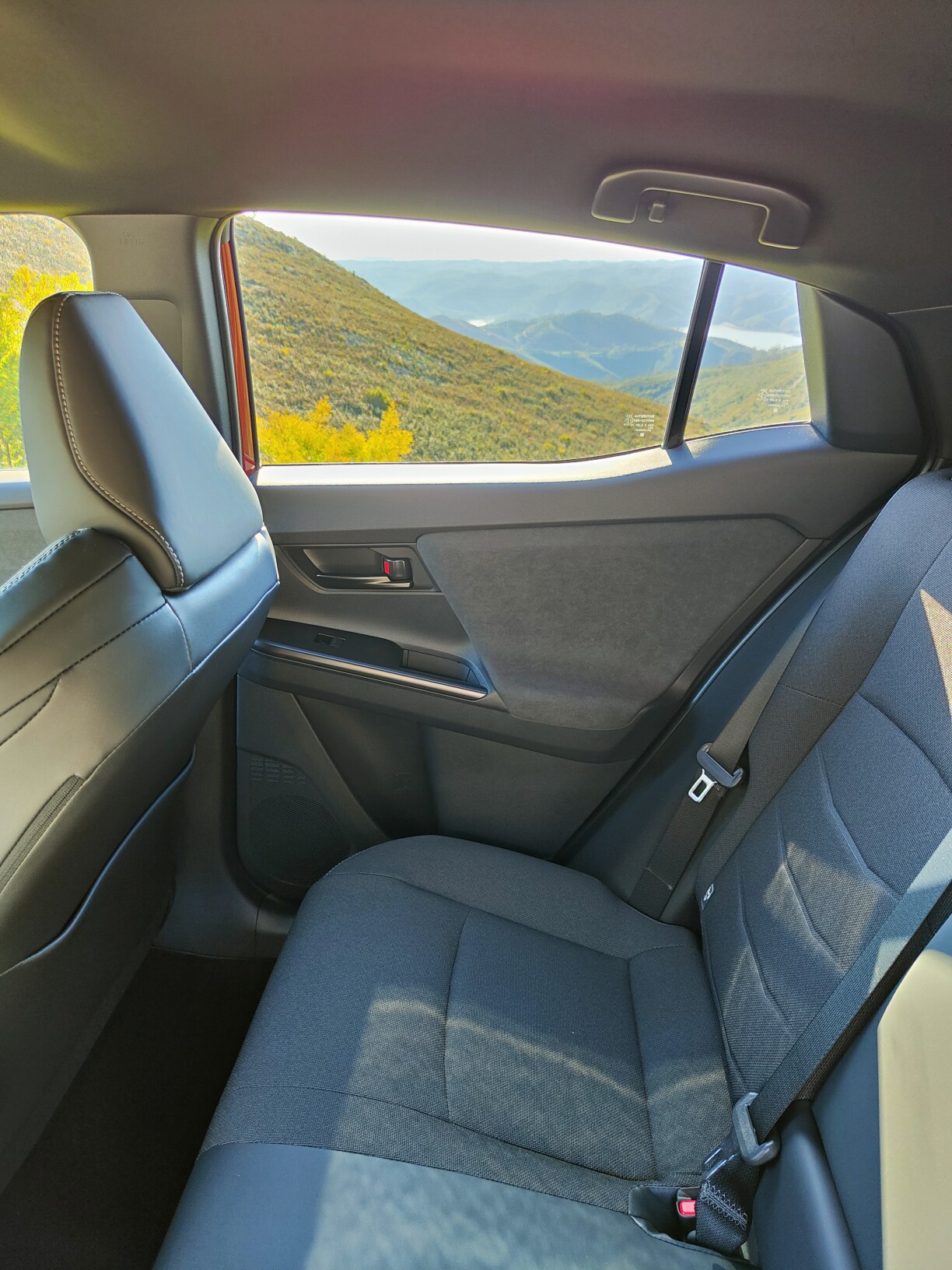 Duerch een niddereg gehalenen Tableau de Bord a vill Fënsterflächen ass den C-HR+ ganz agreabel a lëfteg bannendran. An och hannen, wou ee sech dacks un der Coupé-Silhouette am Sënn vum Wuert stéisst, bleift am neien E-Toyota nach genuch Loft iwwert der Permanente a Plaz fir d’Knéien.