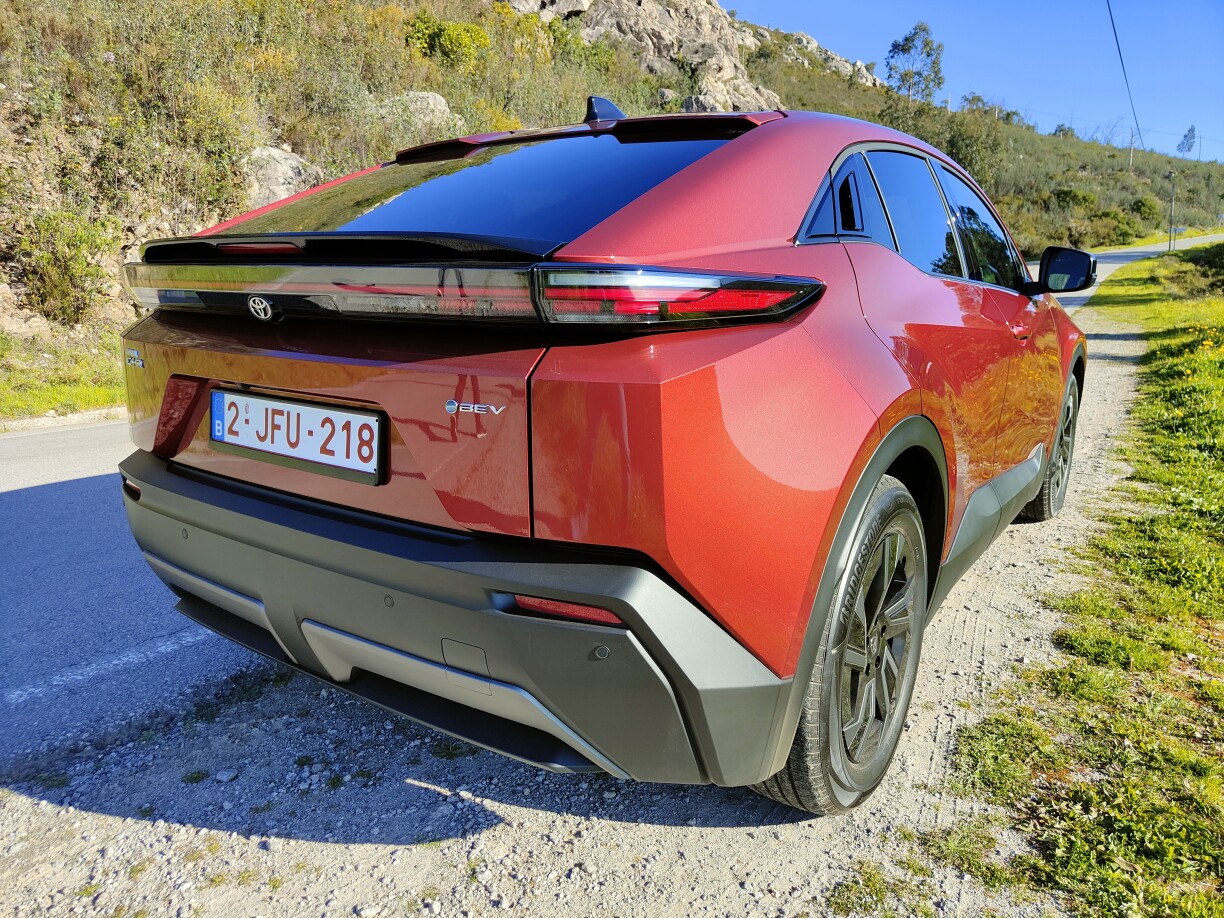Loosse mer soen, am aktuelle Stil vun Toyota, an, villäicht och zum Gléck, ganz anescht an optesch méi gelonge wéi de bZ4X. E bësse Fastback, e bëssen SUV-Coupé, mat 4,5 Meter ronn 15 cm méi laang wéi den C-HR ouni plus an awer nach kompakt. Vir e bësse méi ronn, hannen zimmlech kanteg. A mengen Aen och relativ vill Elementer vu Lexus – esou léisst sech de Look resuméieren.