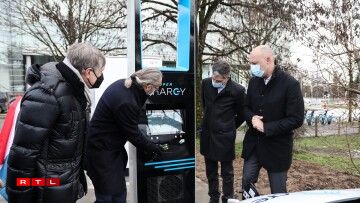 François Bausch, Claude Turmes et Marc Reiffers ont présenté les premières bornes de recharge ultra-rapide publiques pour véhicules électriques En date du 20 janvier 2021, le Vice-Premier ministre, ministre de la Mobilité et des Travaux publics, François Bausch, le ministre de l’Énergie, Claude Turmes, et le directeur général de Creos Luxembourg, Marc Reiffers, ont présenté les premières bornes de recharge ultra-rapide publiques pour véhicules électriques au Luxembourg, appelées «SuperChargy». Assuré par le gestionnaire de réseau de distribution, Creos, le déploiement de 88 bornes de recharge ultra-rapide (160-320 kW) destinées aux voitures 100% électriques est prévu progressivement jusqu’en 2023. 88 bornes de recharge ultra-rapide réparties sur 19 stations: une couverture de toutes les régions du pays Réparties sur tout le territoire national, 19 stations de recharge ultra-rapide seront installées sur les aires de service des autoroutes et sur les autres axes principaux du pays. Les deux premières bornes «SuperChargy» sont opérationnelles depuis le 20 janvier 2021 au Kirchberg (Parking Université du Luxembourg - Campus Kirchberg). Munies du logo «SuperChargy» destiné à identifier les bornes du système national, ces bornes de recharge ultra-rapide peuvent être utilisées avec les mêmes moyens d’identification que les bornes «Chargy» et seront, à partir du 2e trimestre 2021, dotées d’un système de payement avec carte de débit et crédit. Toutes les bornes «Chargy» et «SuperChargy» continueront à distribuer exclusivement de l’électricité produite à partir de 100% d’énergies renouvelables. Un système informatique central commun pour «Chargy» et «SuperChargy»: la facilité d’utilisation pour les utilisateurs Conçue pour compléter le réseau des autres bornes publiques (‘Chargy’ et ‘Chargy-OK’) existant au Luxembourg, l’infrastructure de recharge «SuperChargy» est basée sur un système informatique central commun permettant la communication des données entre les bornes de recharge et les fournisseurs de service de charge. L’infrastructure a donc été planifiée et réalisée de manière à ce que tous les fournisseurs de service de charge puissent proposer leur produit sur toutes les bornes. Cette approche permet aux utilisateurs de recharger leurs voitures électriques avec une seule carte de recharge sur toutes les bornes de recharge compatibles. Les stations «SuperChargy» se distinguent des autres stations de recharge par leur propre identité visuelle, qui s’inscrit dans la continuité du design initial des stations de recharge «Chargy». En plus de leur fonction d’éclairage du site, les lampadaires d’un design particulier intègrent un router Wifi qui sera mis gratuitement à la disposition des clients «SuperChargy». Une infrastructure de recharge ultra-rapide aux quatre coins du pays Lors de la présentation, le Vice-Premier ministre, ministre de la Mobilité et des Travaux publics, François Bausch, a déclaré: «Depuis l’inauguration de la première borne ‘Chargy’ il y a quatre ans, non seulement les immatriculations de voitures électriques au Luxembourg ont fortement augmenté, mais les voitures 100% électriques ont aussi fortement progressé en matière d’autonomie et de vitesse maximale de recharge. Ainsi, ces voitures sont dotées de plus en plus d’autonomie de quelques centaines de kilomètres et peuvent être rechargées à l’aide de bornes de recharge ultra-rapide en quelques minutes. Afin de favoriser les déplacements de longue distance avec des voitures 100% électriques, il était ainsi primordial de prévoir, à l’échelle nationale, une telle infrastructure de charge ultra-rapide, dotée de la même facilité d’utilisation que les bornes ‘Chargy’.» Densification de l’infrastructure de recharge: pratique, propre et près de chez vous Le ministre de l’Énergie, Claude Turmes, a précisé que «l’objectif est de faciliter au maximum le passage à l’électromobilité. À côté des primes pour l’installation d’une borne de recharge chez soi ou la mise en place du réseau de bornes de recharge ‘Chargy’, les nouvelles bornes de recharge ultra-rapide ‘SuperChargy’ représentent un autre maillon important dans la mise en œuvre de notre stratégie nationale. Celle-ci est destinée à améliorer l’infrastructure nécessaire au déploiement de la mobilité électrique, selon le principe: ‘pratique, propre et près de chez vous’. La transition vers l’électrification constitue un élément clé de la décarbonisation du transport, qui est nécessaire pour atteindre nos objectifs climatiques élaborés dans le cadre de notre plan national intégré en matière d’énergie et de climat, ainsi que les objectifs du plan national sur l’amélioration de la qualité de l’air au niveau local et national». Creos, gestionnaire de réseau: au service de la transition énergétique Le directeur général de Creos Luxembourg, Marc Reiffers, a ajouté que Creos, ensemble avec les autres gestionnaires de réseau de distribution, a été chargée en 2016 de mettre en place l’infrastructure «Chargy», d’en opérer le système central informatisé et d’intégrer si possible, toutes les bornes tierces. À ce jour, le système «Chargy» comprend quelques 600 bornes «Chargy» et «Chargy-OK» dont plus de 460 ouvertes au public. Début mars 2020 Creos a également reçu la mission d’implémenter d’ici 2023 quelque 88 bornes de recharge ultra-rapide. Marc Reiffers souligne que l’équipe responsable du projet a réussi à installer les deux premières bornes très rapidement afin de pouvoir réaliser des tests grand public au premier trimestre 2021. Durant cette phase préliminaire de test avec une capacité de charge limitée, les conditions et tarifs appliqués seront identiques à ceux des bornes «Chargy». En conclusion, les