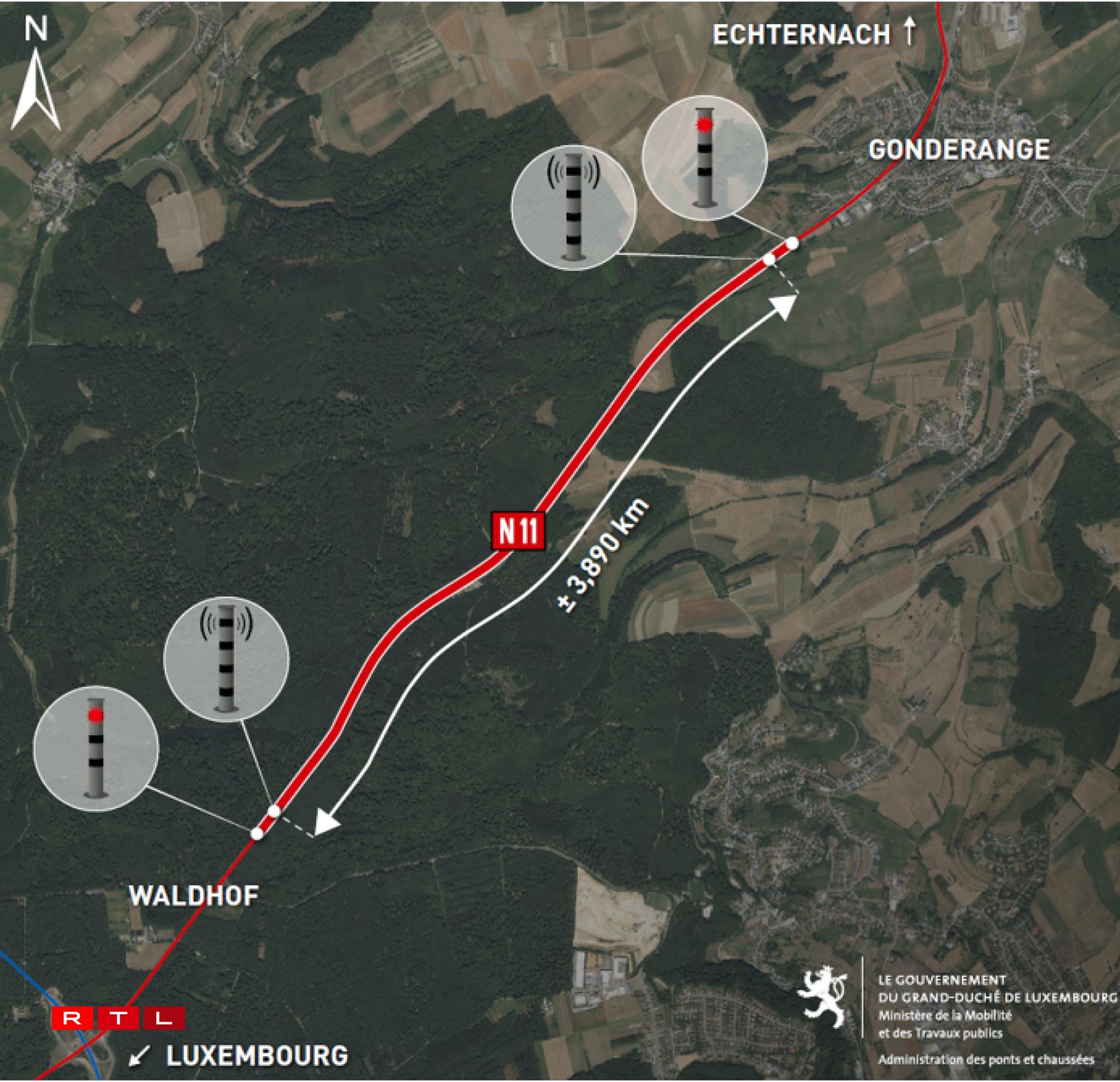 An engem Mount goufe 589 Automobiliste vum Streckeradar tëscht dem Waldhaff a Gonnereng geblëtzt. Zanter genee engem Mount ass den neie Radar op der N11 am Asaz. Do gëtt jo d’Duerchschnëttsvitess gemooss op deene knapp 4 Kilometer. 90 ass hei erlaabt, 75 fir déi schwéier Gefierer.