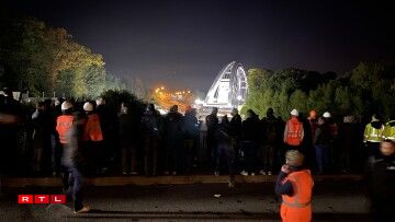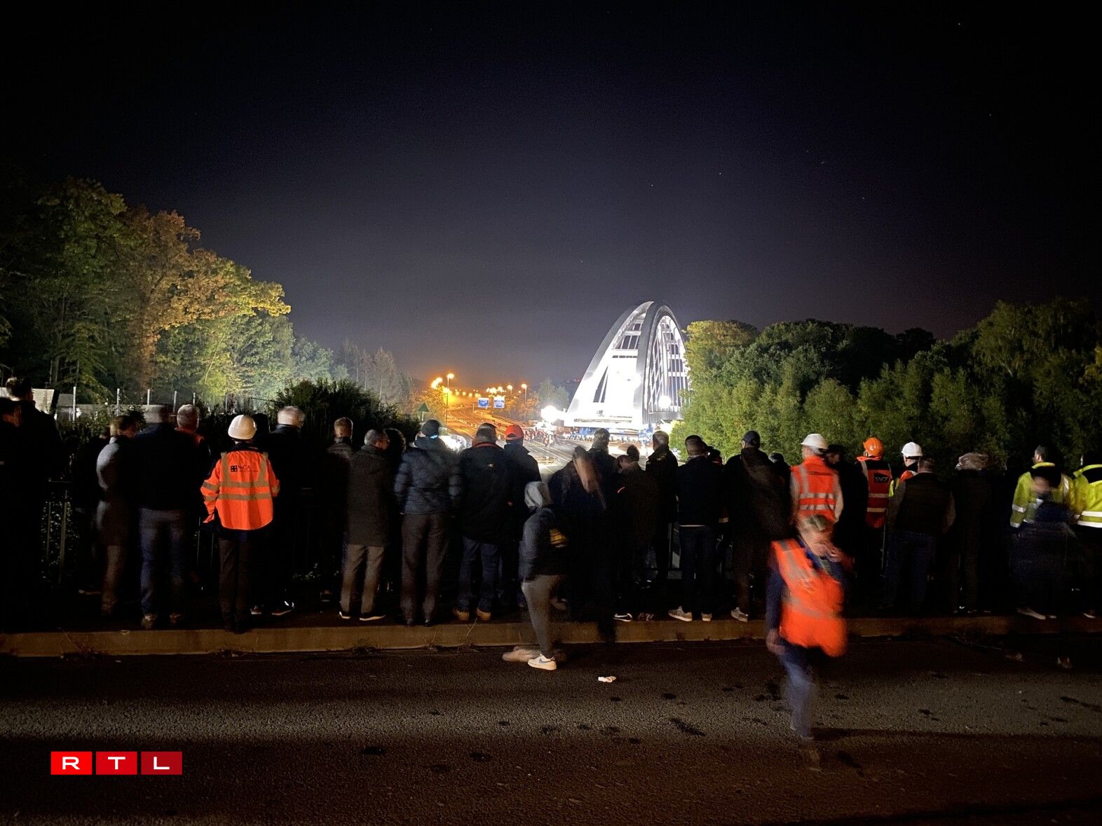 An der Nuecht op e Samschdeg hunn déi spektakulär Aarbechten op an iwwert der Diddelenger A3 ugefaangen. D’CFL zéien hei eng nei Bréck iwwert d’Autobunn, déi dono en Deel vun der neier Linn tëscht Beetebuerg an der Stad wäert sinn. Dat ass en technesch opwännege Virgang, dee prezis muss geplangt ginn an iwwer Stonnen dauert.