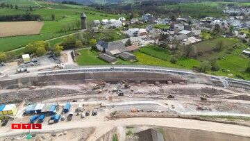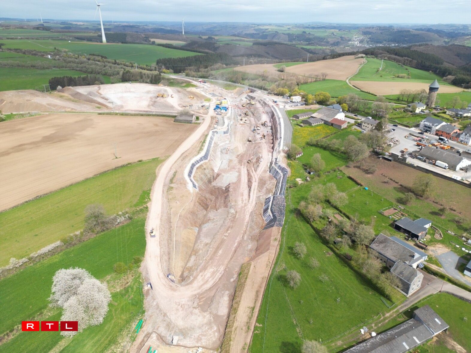 “Mir hunn natierlech e bëssi méi wäit, op engem aneren Deel vun dësem Projet, wou haut nach net ugefaangen ass, do ass eng ganz speziell geologesch Situatioun, déi mer virfonnt hunn. Hei leien nach Kiesschichten, déi vun engem Urzäitfloss viru Millioune vu Jore leie bliwwe sinn. Do hu mer de Projet mussen adaptéieren, wou mer lo eng Bréck vun iwwert 100 Meter wäerten setzen, ee Viaduc, mat zwee Pilieren dertëschent. An dat si mer amgaangen unzepassen.”