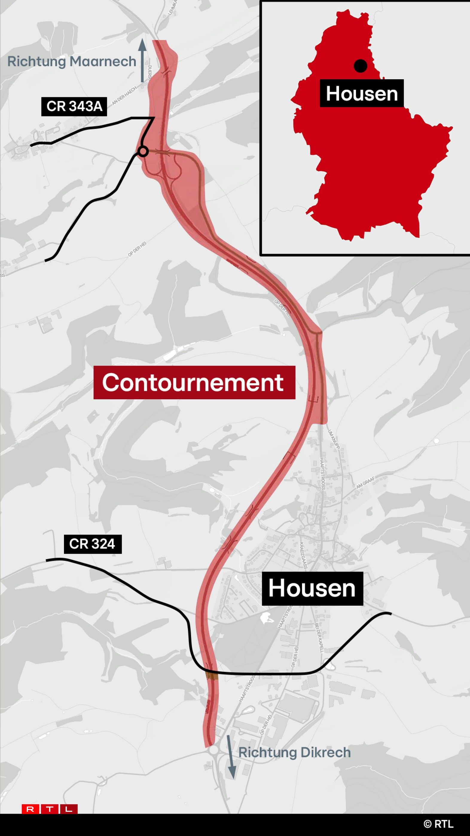 De Marc Ries ënnersträicht, datt ee gutt mat den Aarbechte viru kéim. Ma trotzdeem geet op eemol Riets dervun, datt dee ganze Contournement 2030 opgoe soll. Bis elo gouf ëmmer d’Joer 2029 als Zäitpunkt fir d’Enn vum Chantier genannt. Een éischten Deel, dee ronderëm Housen féiert, soll zwar schonn 2028 opgoen, mee en anert Stéck awer eréischt zwee Joer méi spéit. Op engem aneren Deel vum Contournement ginn et iwwerdeems Problemer, well déi geologesch Begebenheeten net sou sinn, wéi ee sech dat erwaart hat.