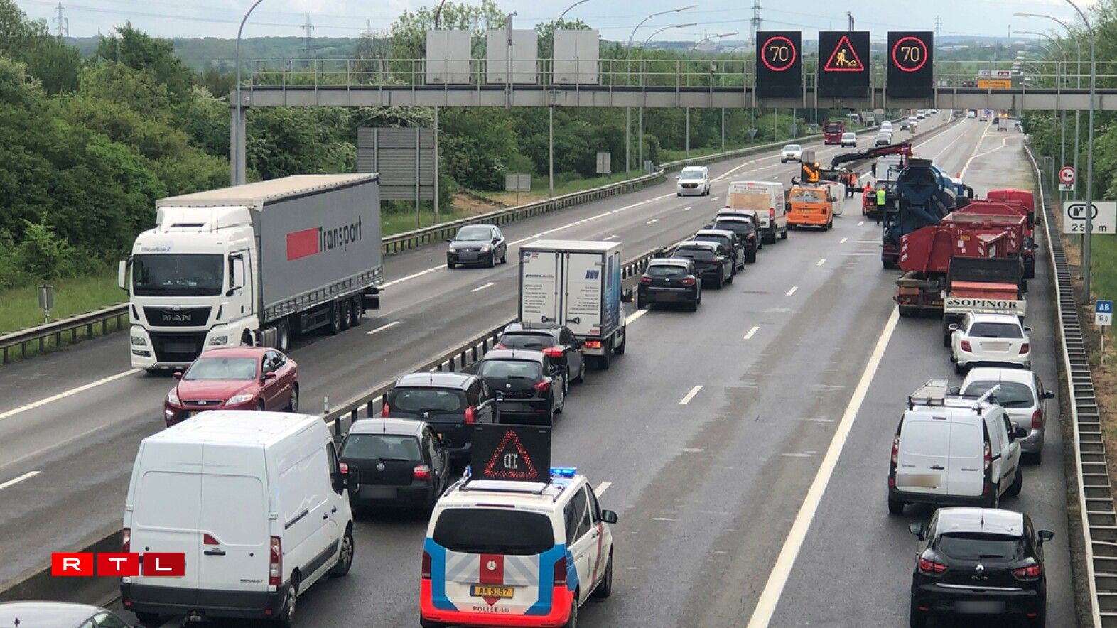 Géint 14.15 Auer koum et op der A6 a Richtung Stad op der Héicht vun der Baustell bei Stroossen zu engem Accident. E gréissere Stau gouf doduerch provozéiert.