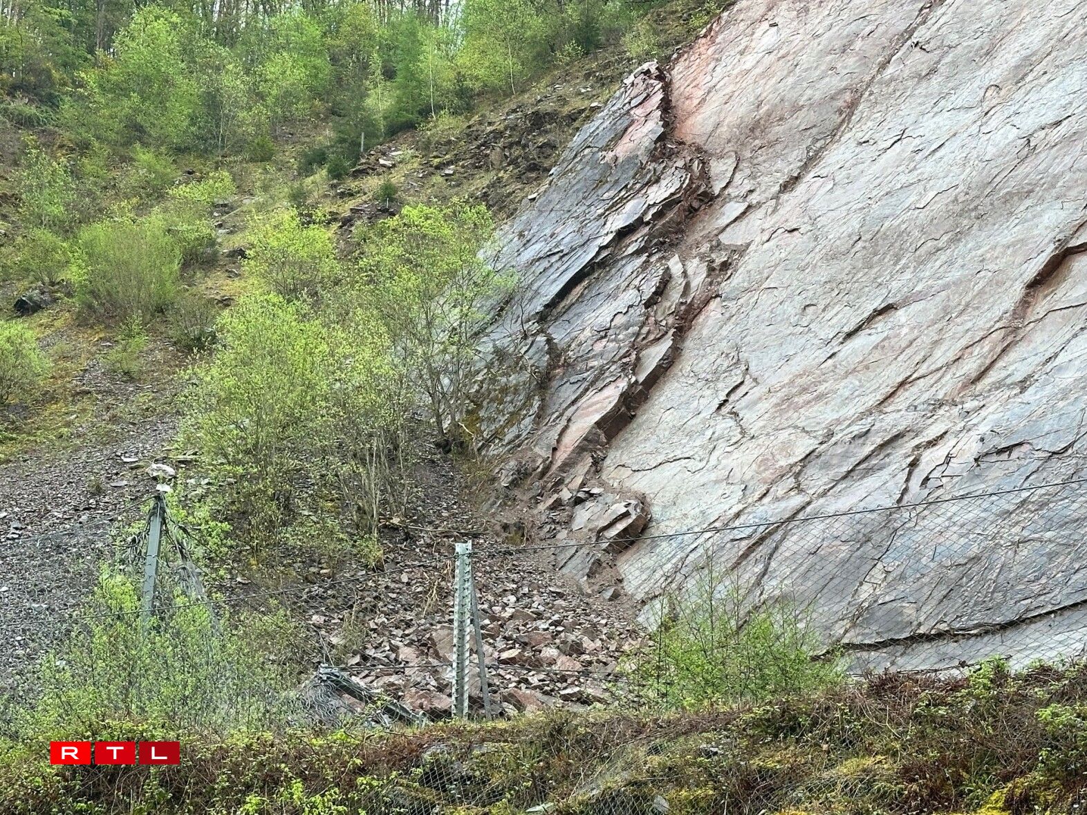Doduerch goufen d’Sécherheetsnetzer schro beschiedegt, sou datt opwänneg Aarbechten un der Fielsmauer néideg waren: Am Asaz waren ënnert anerem en Helikopter, aus deem Waasser erofgeschott gouf, fir weider lasse Fielsstécker aus der Mauer ze léisen an Alpinisten, déi d’Fielse manuell gebotzt hunn.