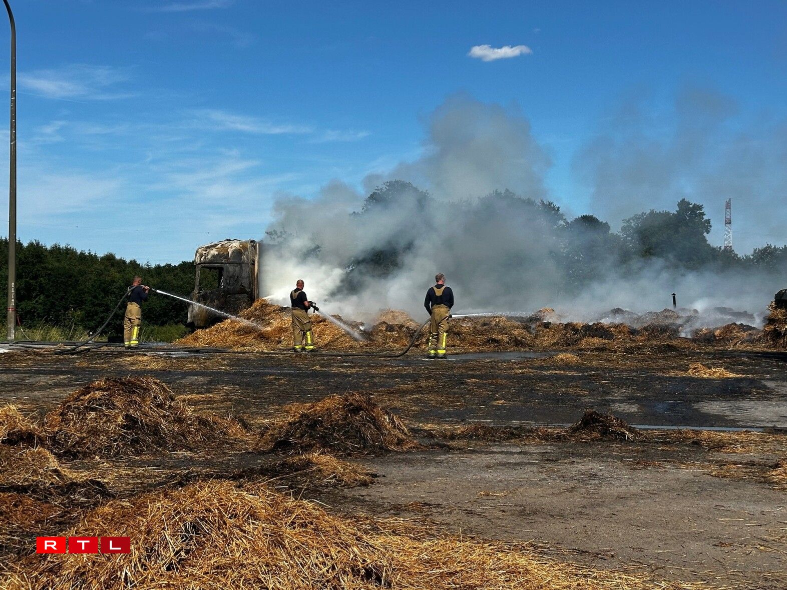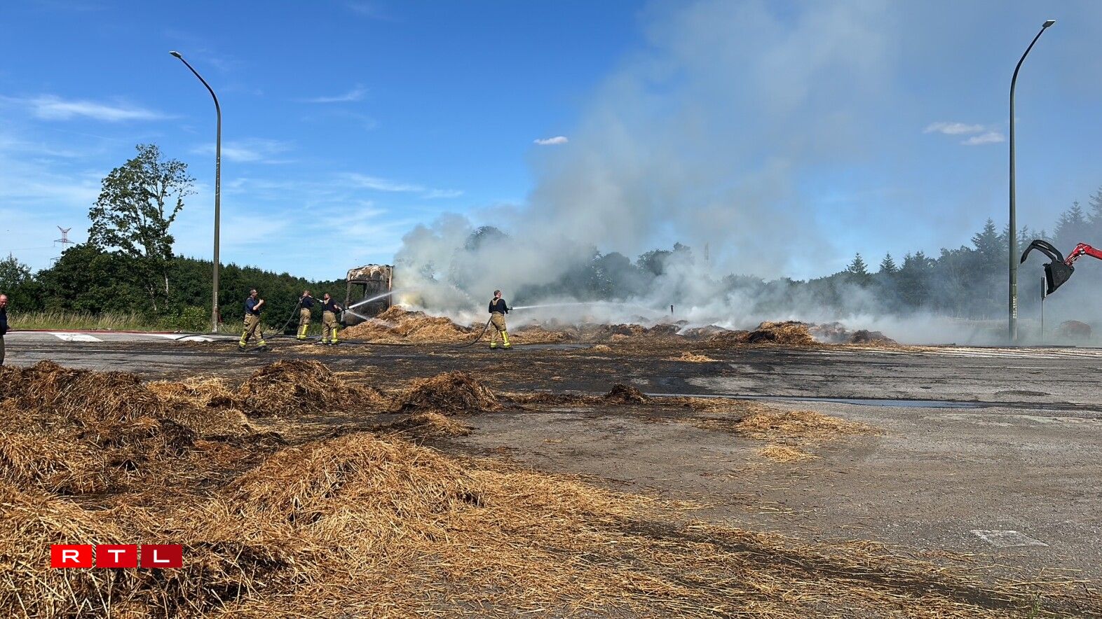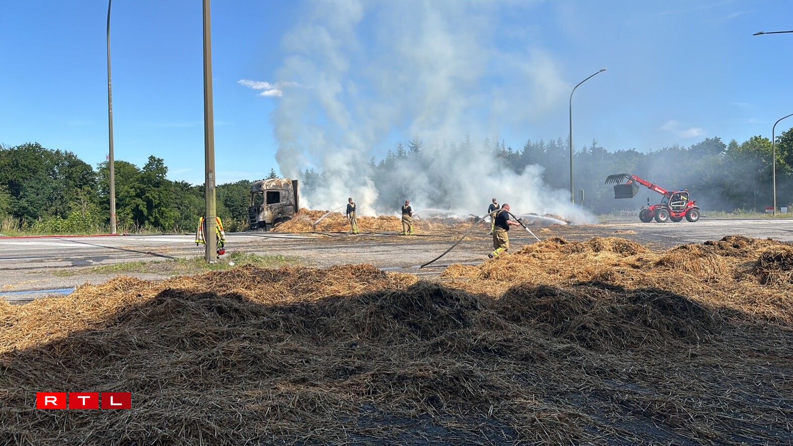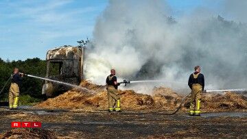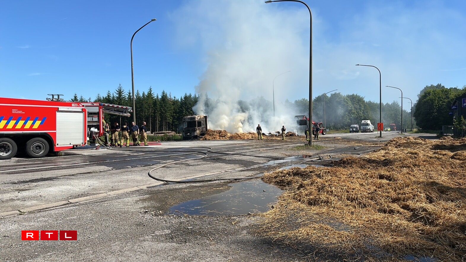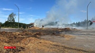 E Freideg kuerz no 13 Auer huet e Camion, dee Stréi/Hee transportéiert, op der Héicht vum Duerf "La Folie" Feier gefaangen. D'N4 huet musse gespaart ginn.