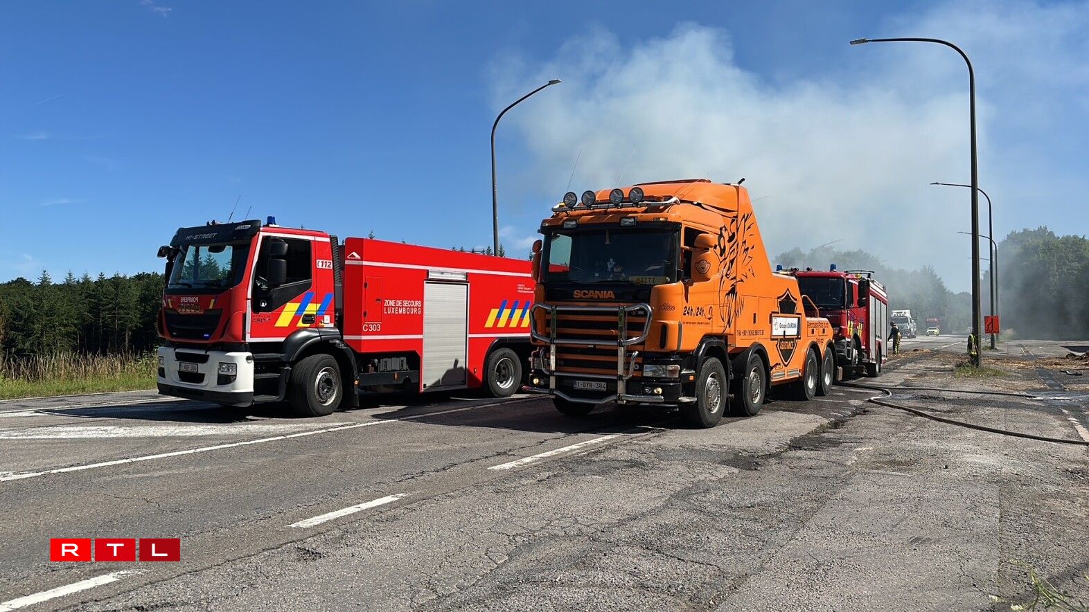 N4 gouf gespaartCamion a Brand op der belscher N4 Richtung Maartel no un der Lëtzebuerger Grenz