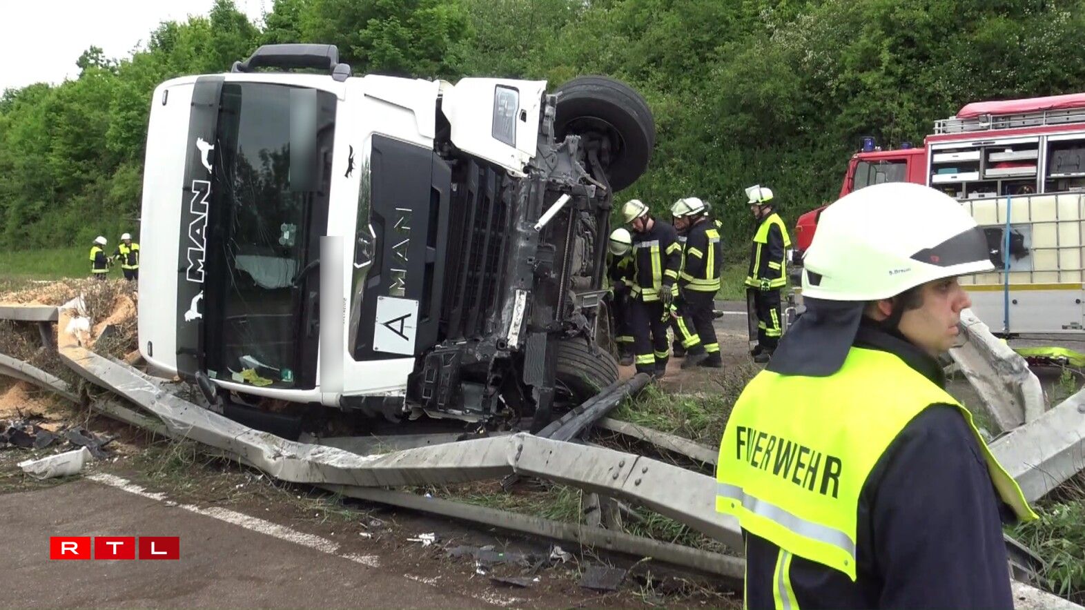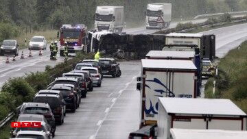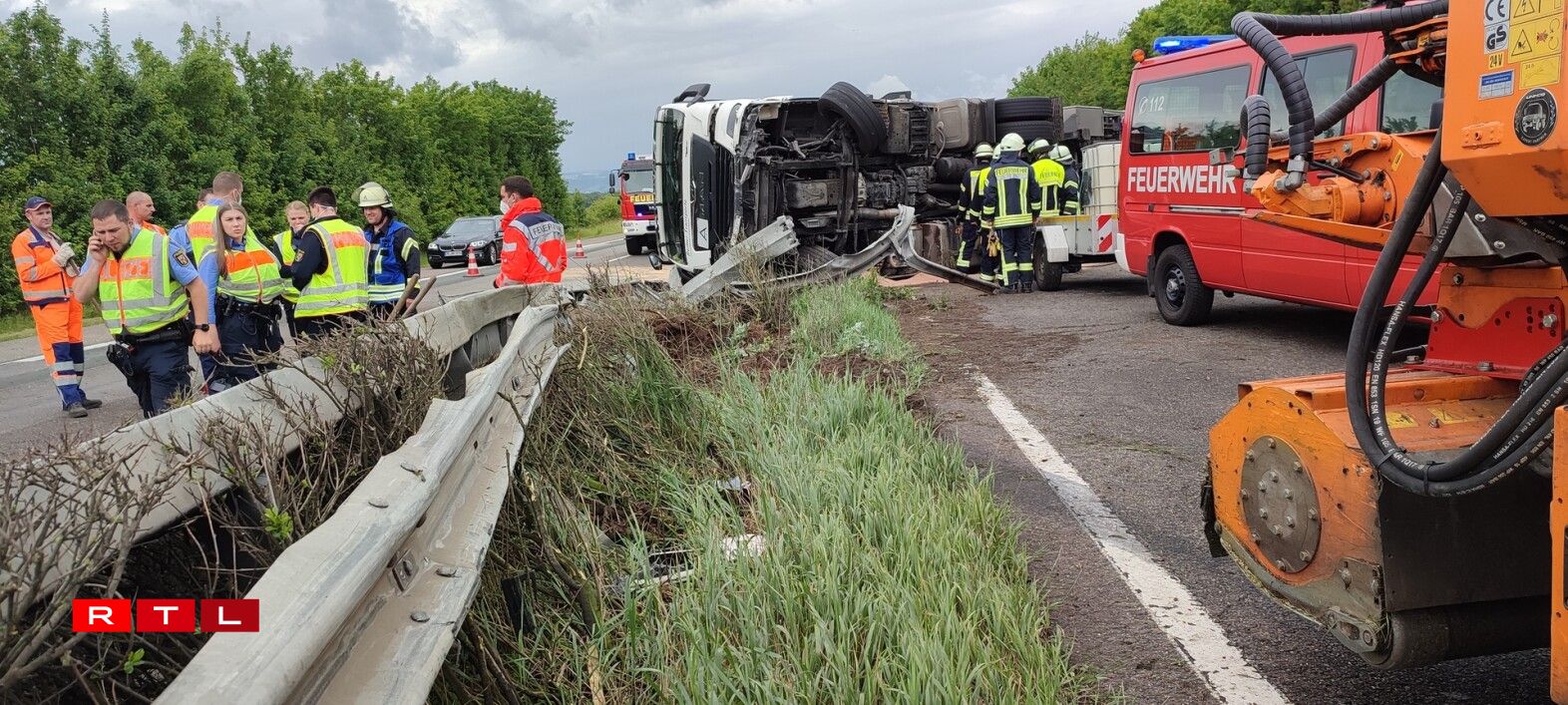 Tréierer AutobunnCamion ëmgekippt, A64 a Richtung Lëtzebuerg gespaart