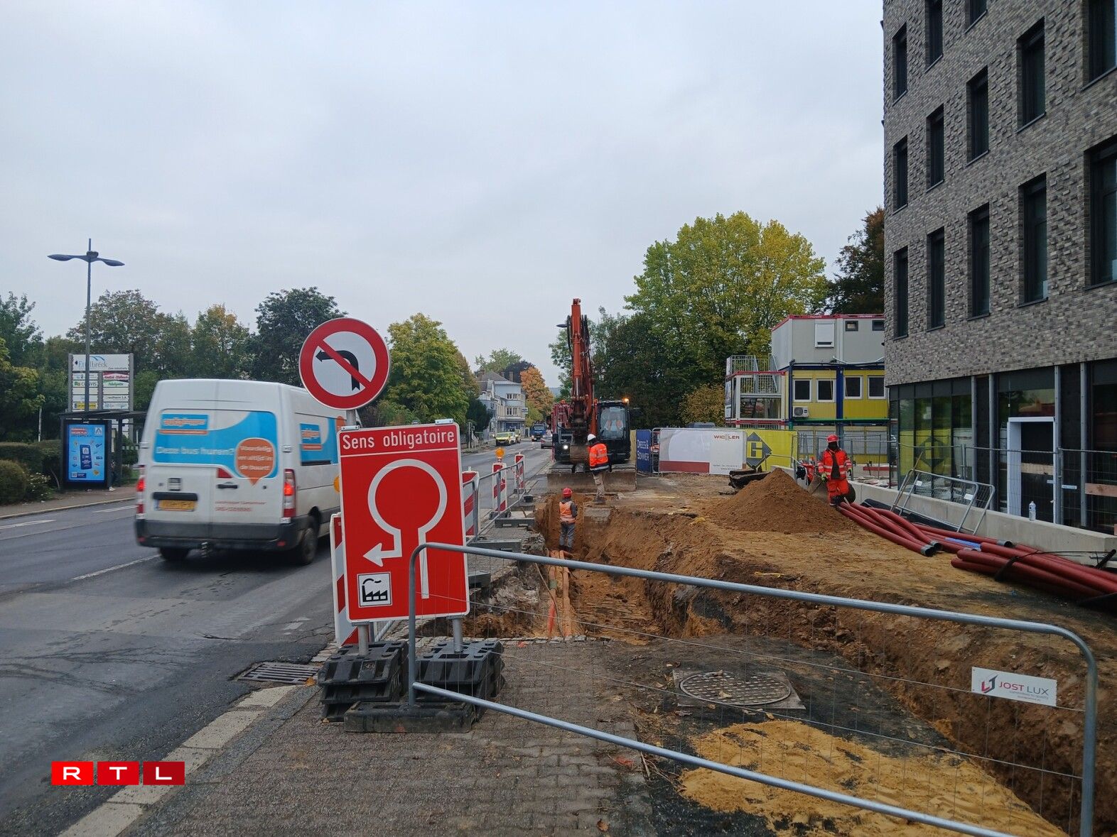 Zanter zwou Woche rullen an der Ettelbrécker Avenue des alliés d’Baggeren. Op enger Längt vun 300 Meter gëtt d’Strooss reamenagéiert. Konkret bedeit dat, datt se méi breet gëtt. A Richtung Süden kënnt eng zousätzlech Spuer mat engem Bypass fir déi Gefierer bäi, déi op Schieren fuere wëllen. A Richtung vum Ettelbrécker Zentrum kënnt eng Spuer fir déi Gefierer bäi, déi lénks an d’Rue Jean-Pierre Thill fuere wëllen. D’Kräizung gëtt zudeem mat roude Luuchten ekipéiert. Deen een oder anere freet sech vläicht, firwat hei kee Rond-point hikënnt.