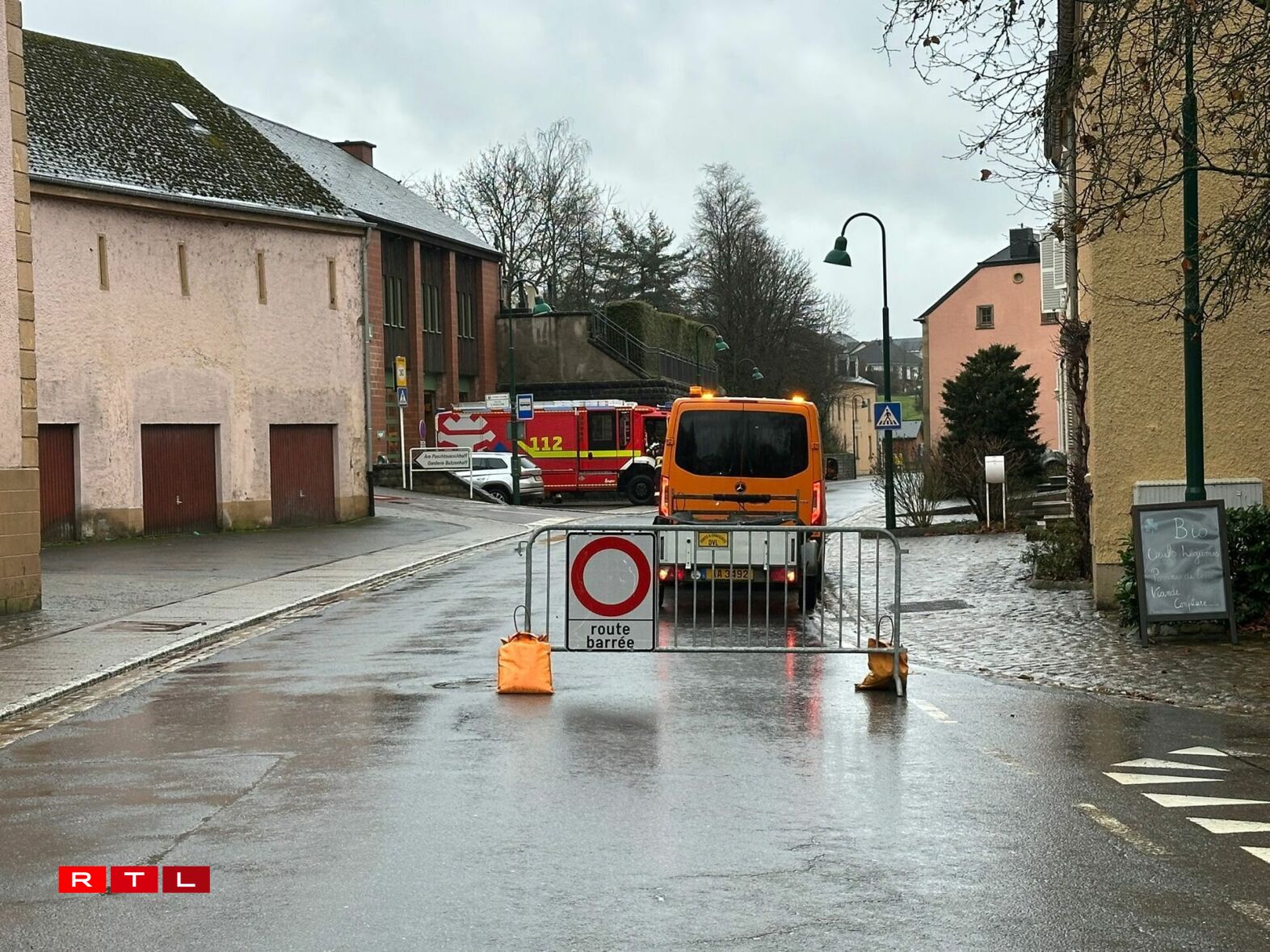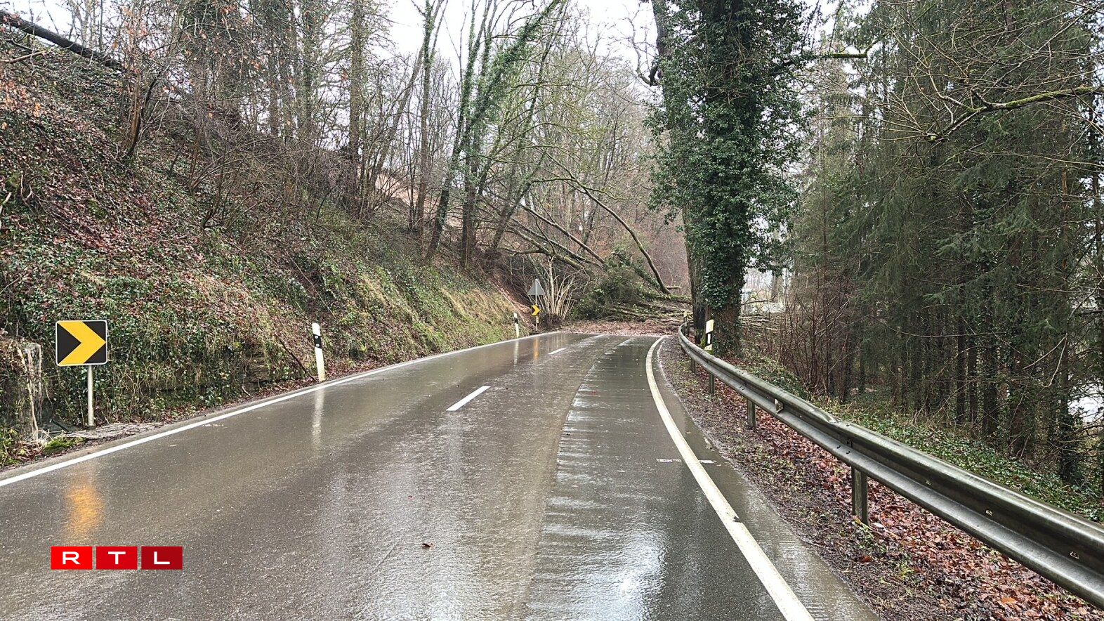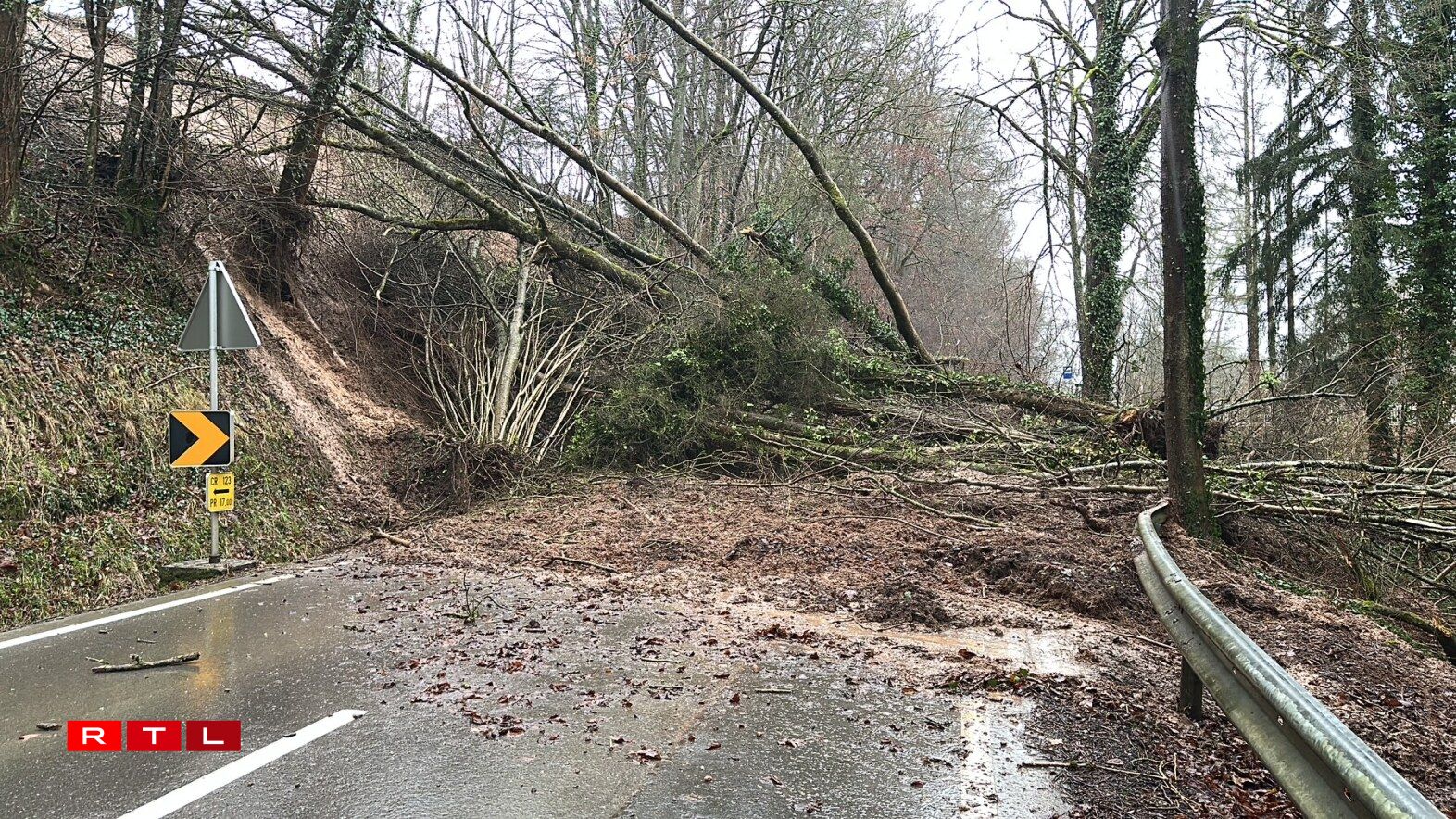 Op dëser Plaz leie Beem a Buedem an der Strooss. D’Police deelt dann och mat, dass d’Streck bis op Weideres fir den Trafic gespaart ass.