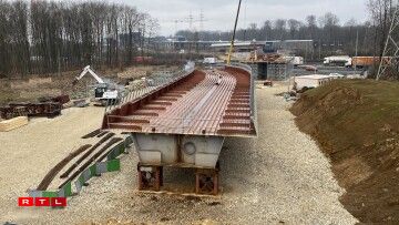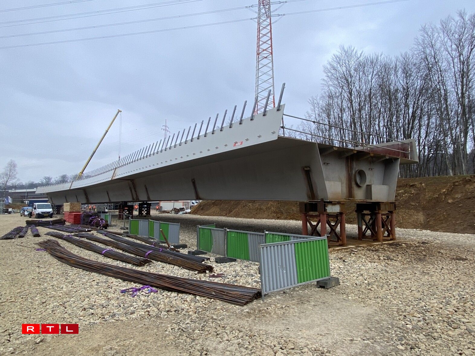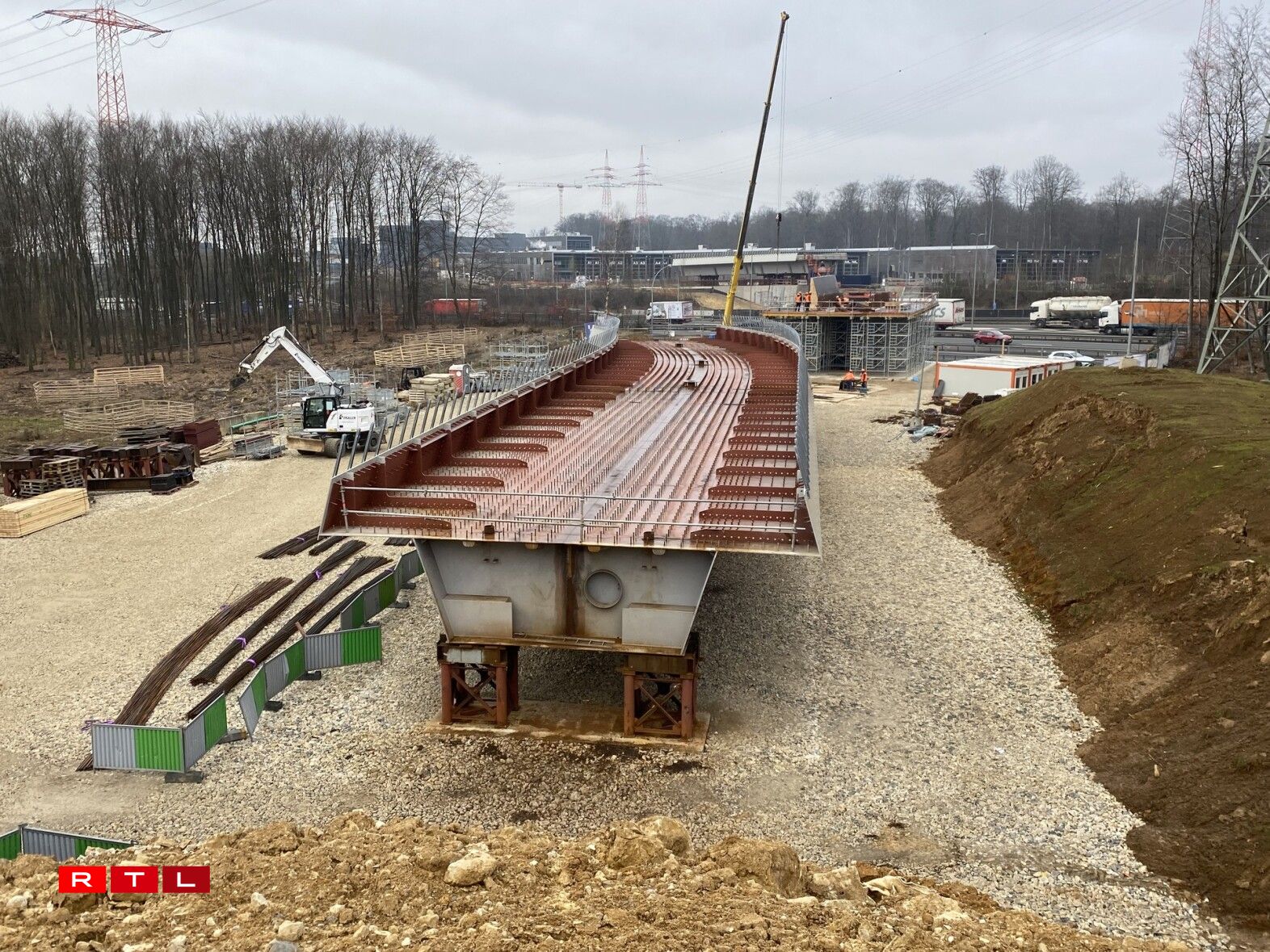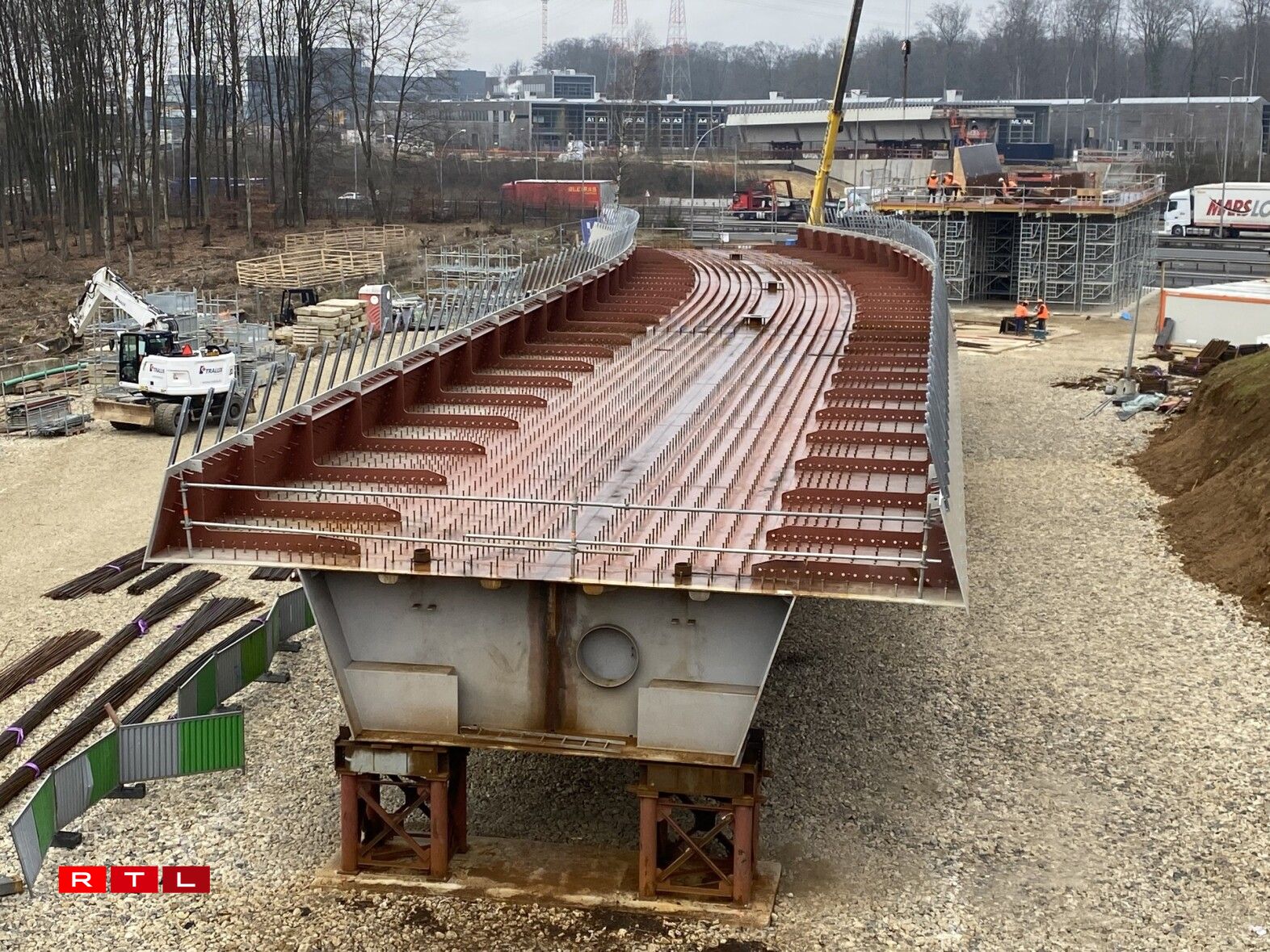 Am Mee wäert déi nei Tramsbréck iwwert der Tréierer Autobunn op hir definitiv Plaz gesat ginn. 15 Milliounen Euro kascht se. Si ass 110 Meter laang, 10 Meter breet an 8 Meter iwwert der Autobunn. De neien Tronçon verbënnt d’Luxexpo mam Findel.