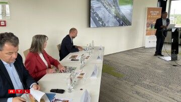 Och a Richtung Findel lafen Tramsaarbechten op Héichtouren. Tëscht dem Hierscht dëst Joer an dem Fréijoer 23 wäert sech d’Bild vun der Tréierer Autobunn änneren. Eng Bréck entsteet hei. Ufank 2024 sollen da Schinnen iwwer d’Bréck geluecht ginn, Enn 24 soll den Tram da bis bei de Fluchhafe rullen.