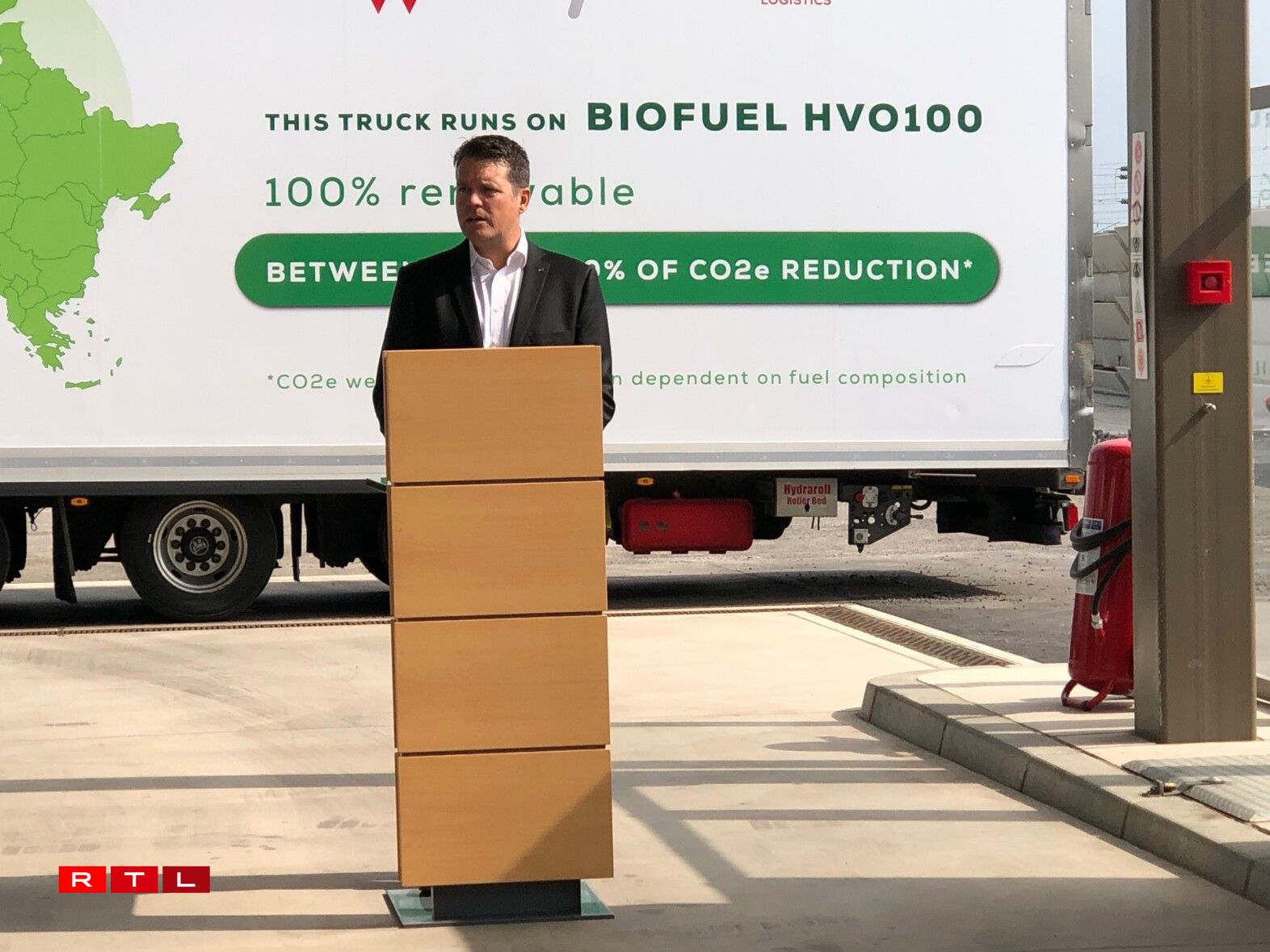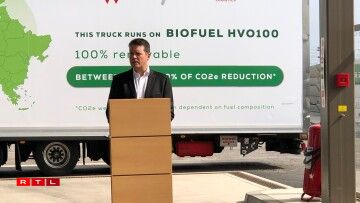 Se hunn deen éischte Camion zu Lëtzebuerg virgestallt, deen zu 100 Prozent mat Biodiesel bedriwwe gëtt. Dëse Biosprit gëtt aus verschiddene biobaséierte Reschtstoffer an Offäll produzéiert. D’Zil ass et, domadder seng CO2-Emissiounen ëm 90 Prozent ze reduzéieren. Dat ass eng Première hei am Land. Den Transportbetrib Artur Welter hat och Total Energies beoptraagt, eng Biodiesel-Pompel am Centre Routier Sécurisé zu Beetebuerg z’installéieren. Hei kann elo erneierbare Biosprit getankt ginn.