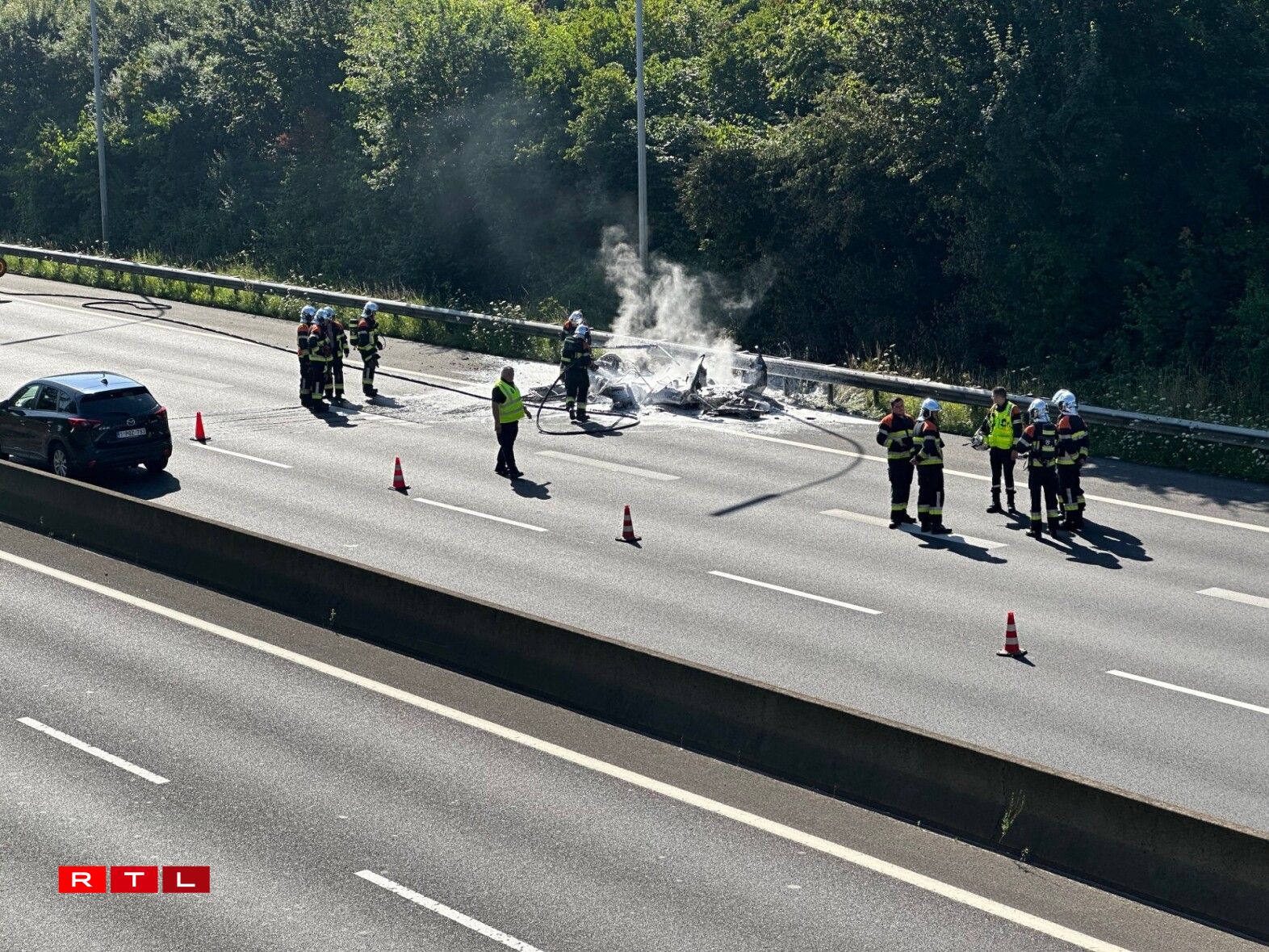 Sortie StengefortEng Roulotte op der A6 brennt komplett aus