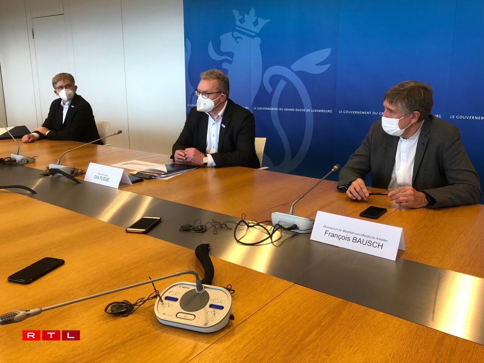 Am heutigen Montag, 10. Mai hat François Bausch, Minister für Mobilität und öffentliche Arbeiten, Dirk Flege, Geschäftsführer, sowie seinen Kollegen Dr. Andreas Geißler, Referent für Verkehrspolitik des Bündnisses „Allianz pro Schiene” in Luxemburg empfangen. Bereits im vergangenen Frühling war François Bausch in Berlin, um dort das luxemburgische Verkehrs- und Mobilitätskonzept zu präsentieren.