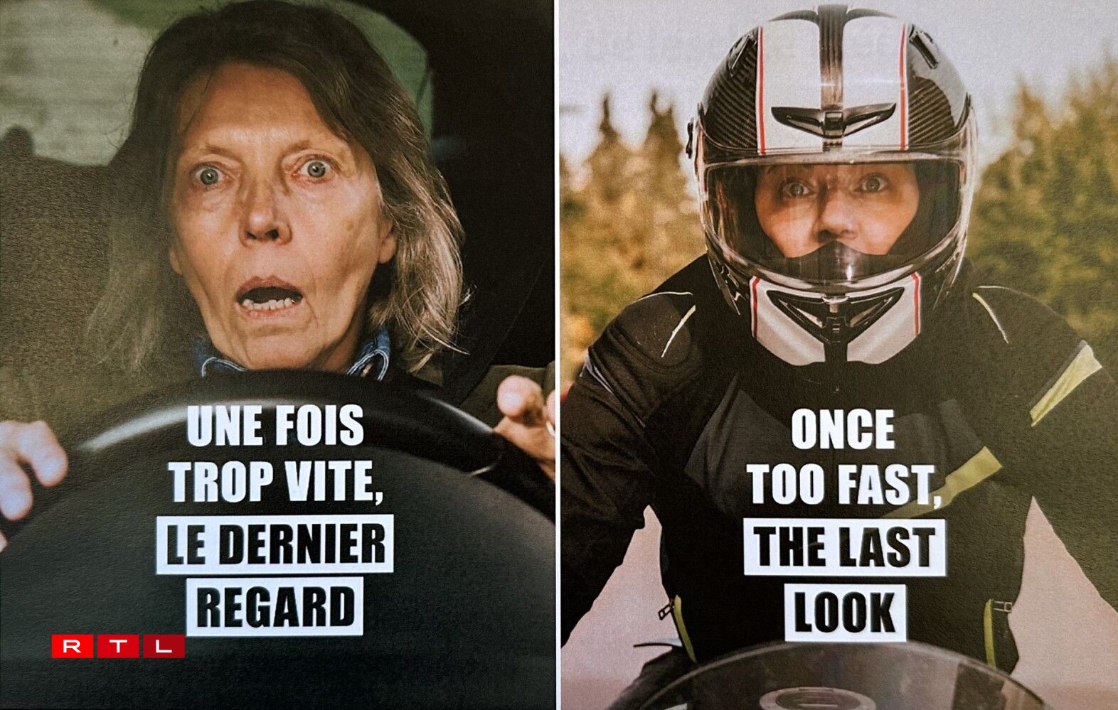 La campagne «Eng Kéier ze séier, de leschte Bléck» est affichée sur 46 panneaux routiers ainsi que sur les panneaux à messages variables du CITA (Contrôle et informations du trafic sur les autoroutes).