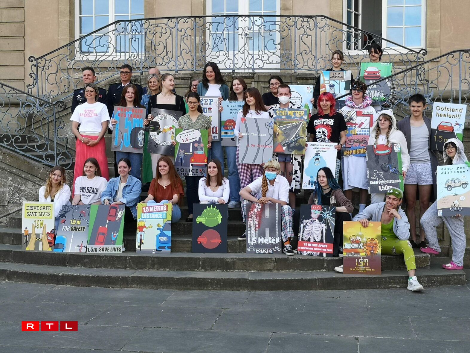C’est dans cette optique qu’un concours d’idées a été lancé avec les élèves du Lycée classique d’Echternach qui ont réalisé des affiches destinées à attirer l’attention sur le sujet de la distance latérale minimale d’au moins 1,5 mètre. Lors de ce concours, d’excellentes idées ont été développées par les élèves.