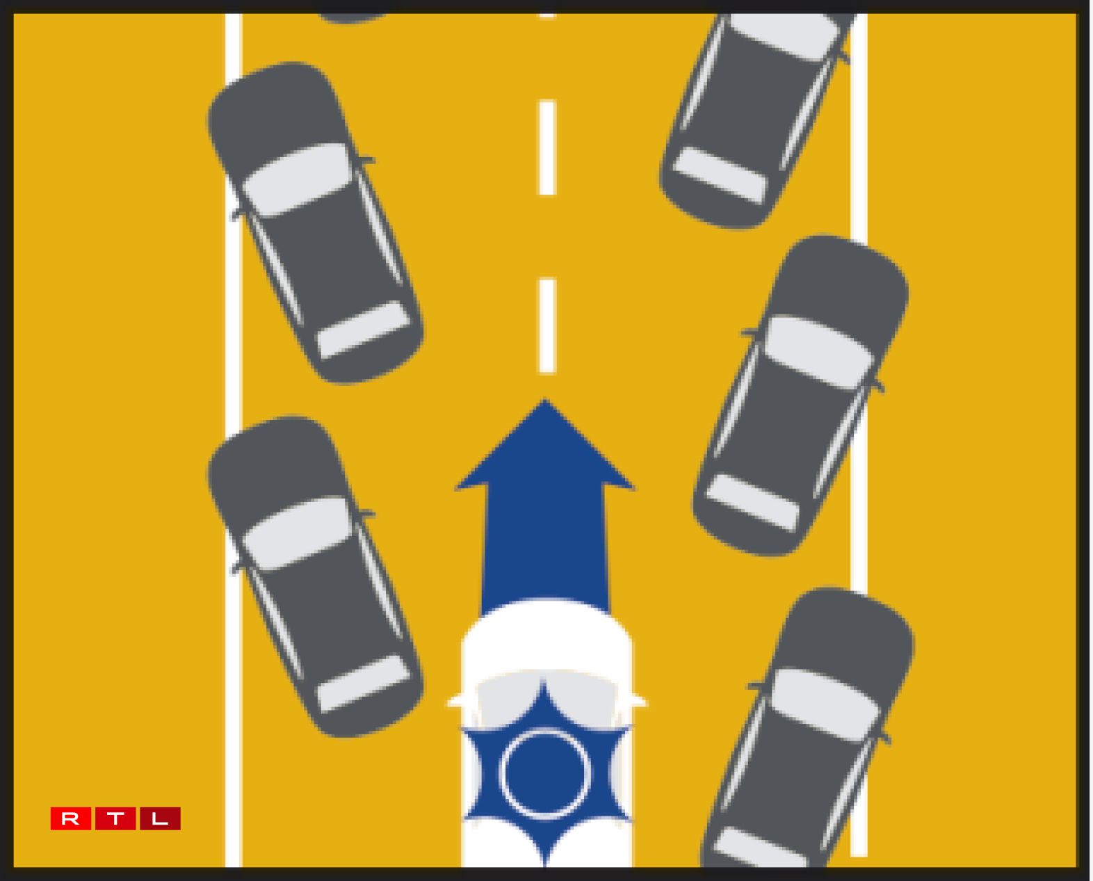 Wéi a wou muss ee sech dann deplacéieren, fir d’Rettungsgaass richteg ze forméieren, bei zum Beispill zwou oder dräi Spueren? De Manuel Ruggiu: