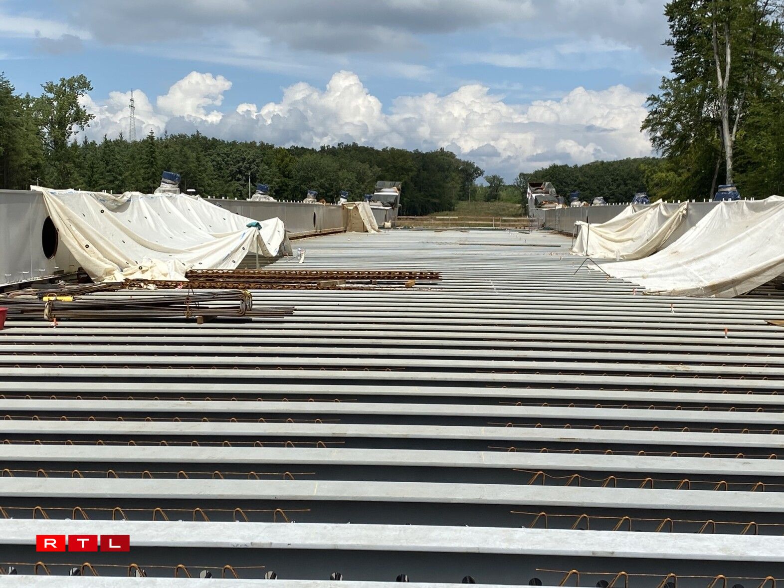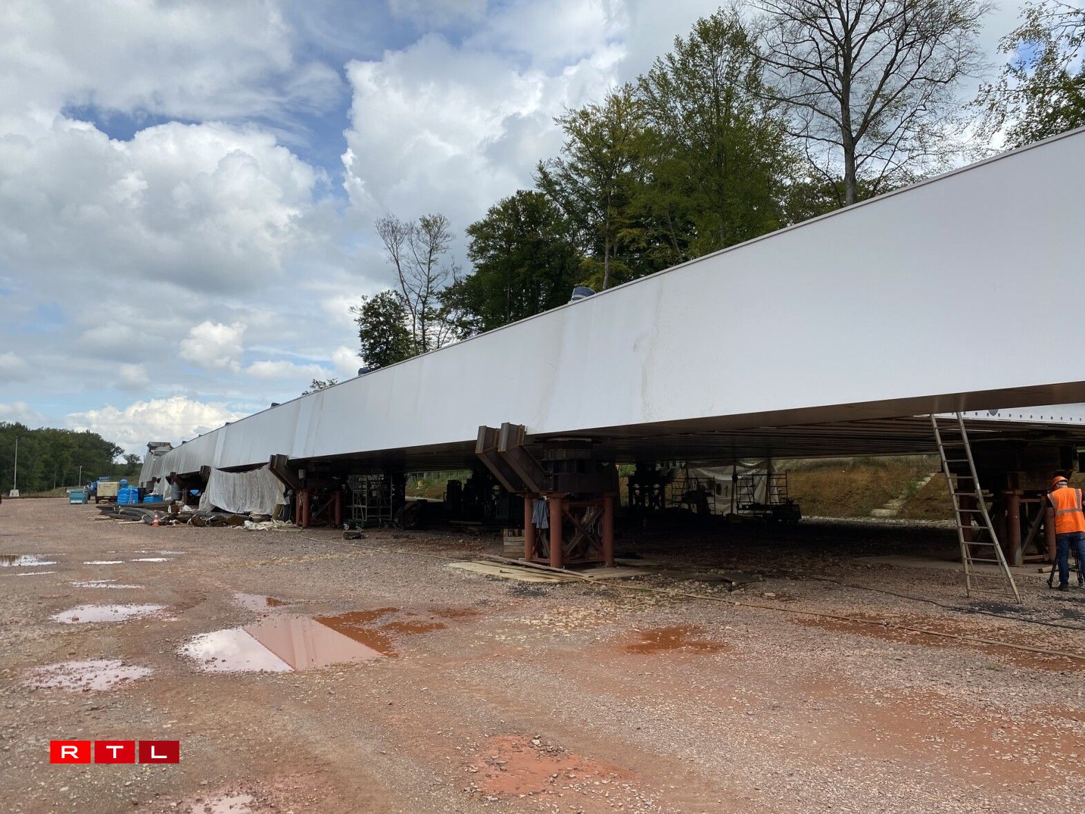 Spéider ass dës Stolebréck 200 Meter laang, 18 Meter breet a bréngt ronn 5.900 Tonnen op d’Wo. Dobäi kënnt nach e Bou vu 40 Meter Héicht. A genee hei läit d’Erausfuerderung vun den Aarbechten.