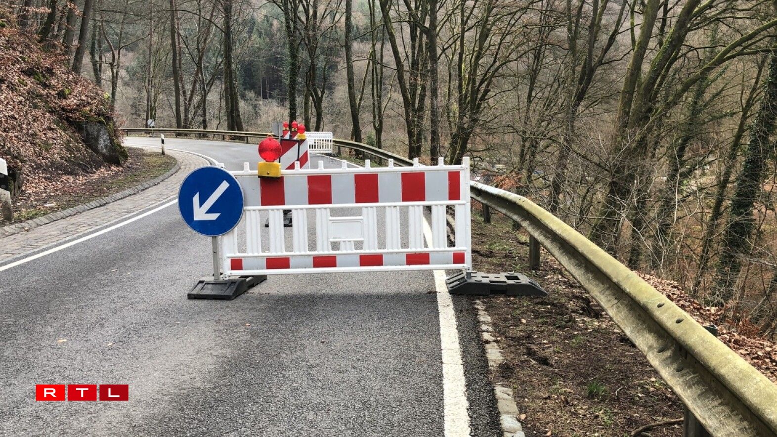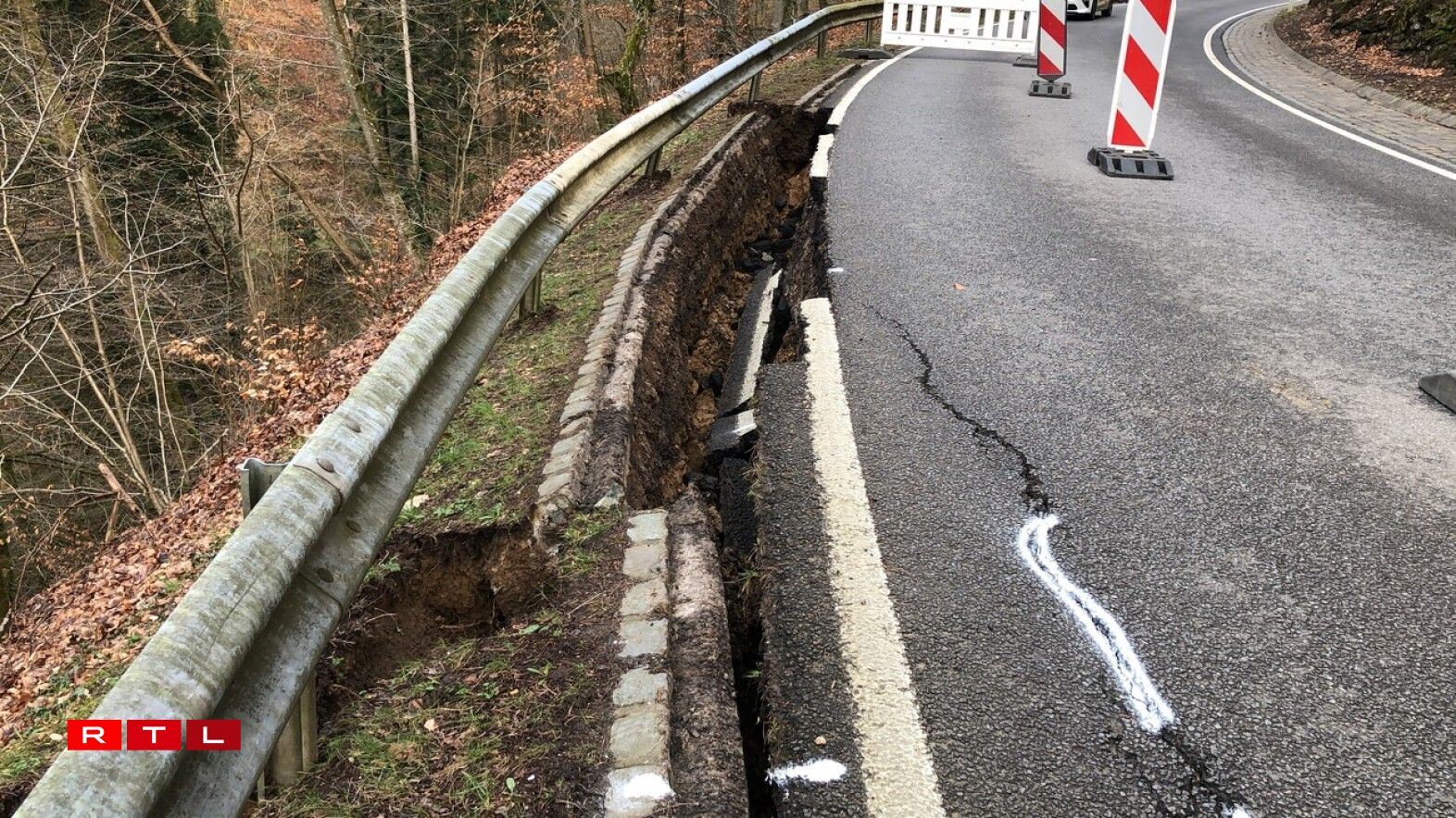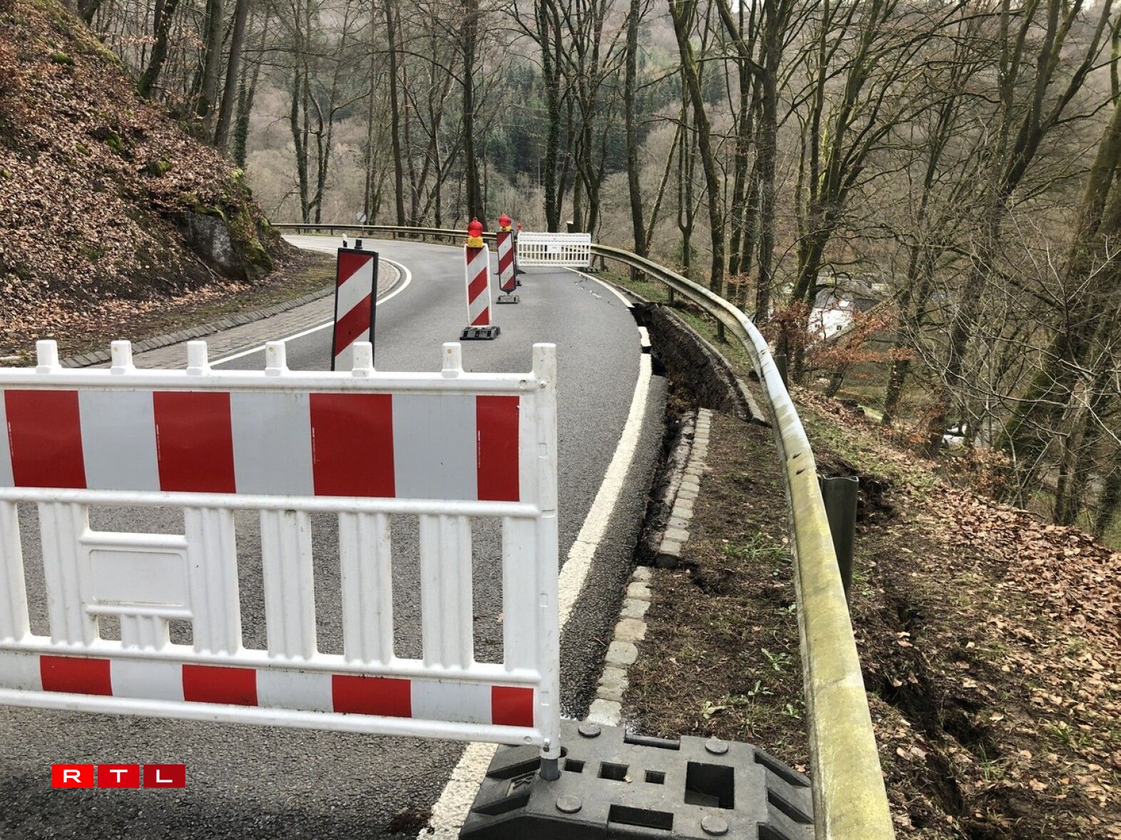D'Streck tëscht Waldbëlleg an dem Mëllerdall huet musse gespaart ginn, well d'Strooss Rëss huet an Deels scho säitlech ewechgebrach ass.